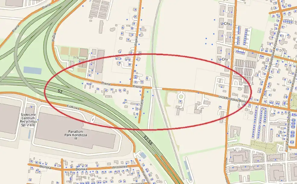 Oferujemy działkę inwestycyjną o powierzchni 10055 m2, zlokalizowaną przy węźle Konotopa (gmina Ożarów Mazowiecki), tuż przy Trasie S2.
