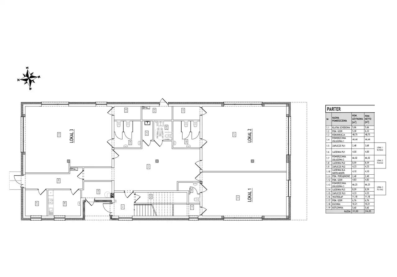 Lokal w stanie deweloperskim, z przeznaczeniem na działalność usługową, biurową, handlową. Usytuowany na 1 piętrze w nowym budynku z 2025 roku.