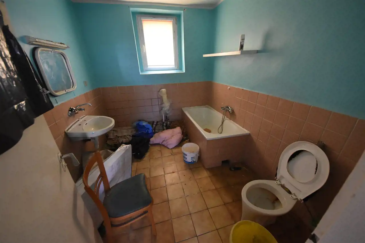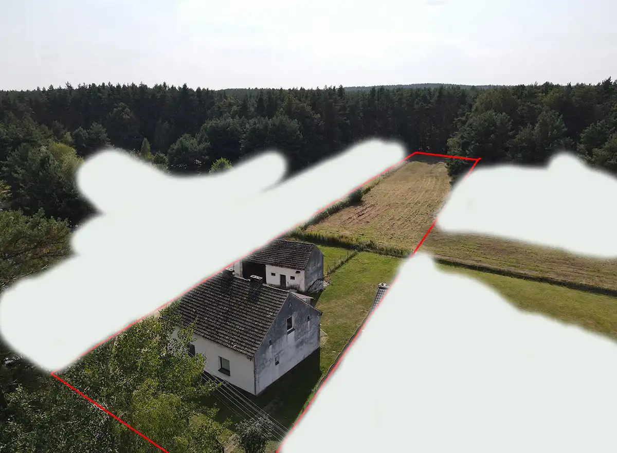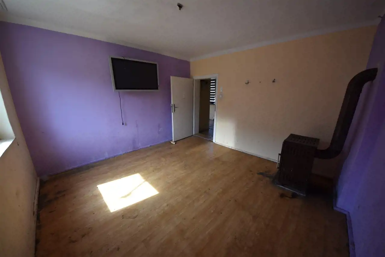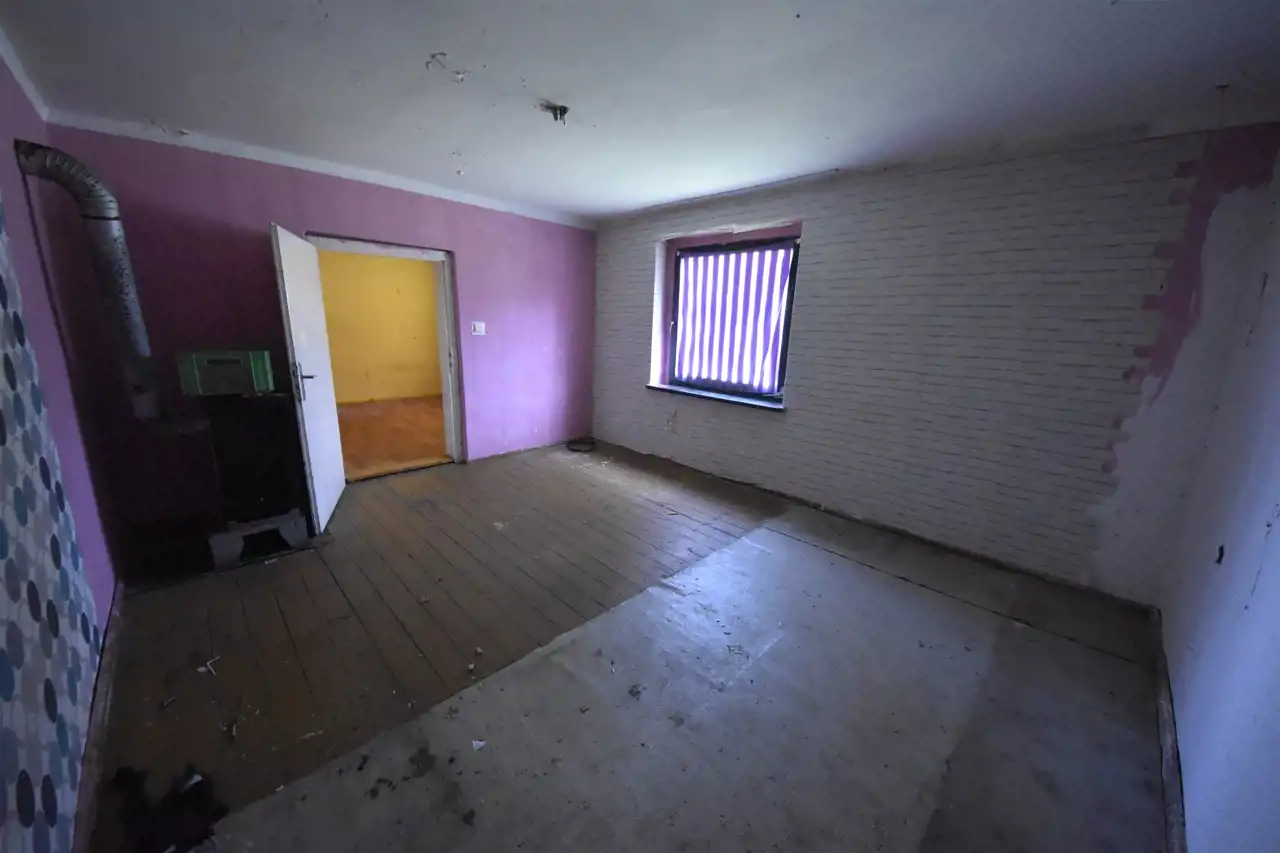 Opis budynku: Nieruchomość z częściowo zagospodarowanym poddaszem o pow. użytkowej około 86 m2, składa się z 4 pokoi, kuchni, łazienki połączonej z WC, przedpokoju, pomieszczenia piwnicznego, kotłowni. Parter obejmuje 3 pokoje, kuchnię, łazienkę z WC, na poddaszu urządzono 1 pokój. Obok domu usytuowana jest stodoła połączona z pomieszczeniami gospodarczymi. Budynek mieszkalny z 1963 r oraz zabudowania, wymagają gruntownego remontu. Cała nieruchomości, składa się z trzech działek, które można zabudować tj. pierwsza 9,69 ar zabudowana w/w obiektami, druga 10,3 ar, trzecia 13,6 ar bez zabudowy. Razem 33,4 ar.