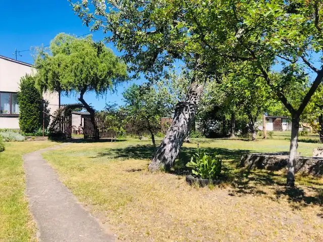 - Działka Zagospodarowana, lekko nachylona, prostokąt