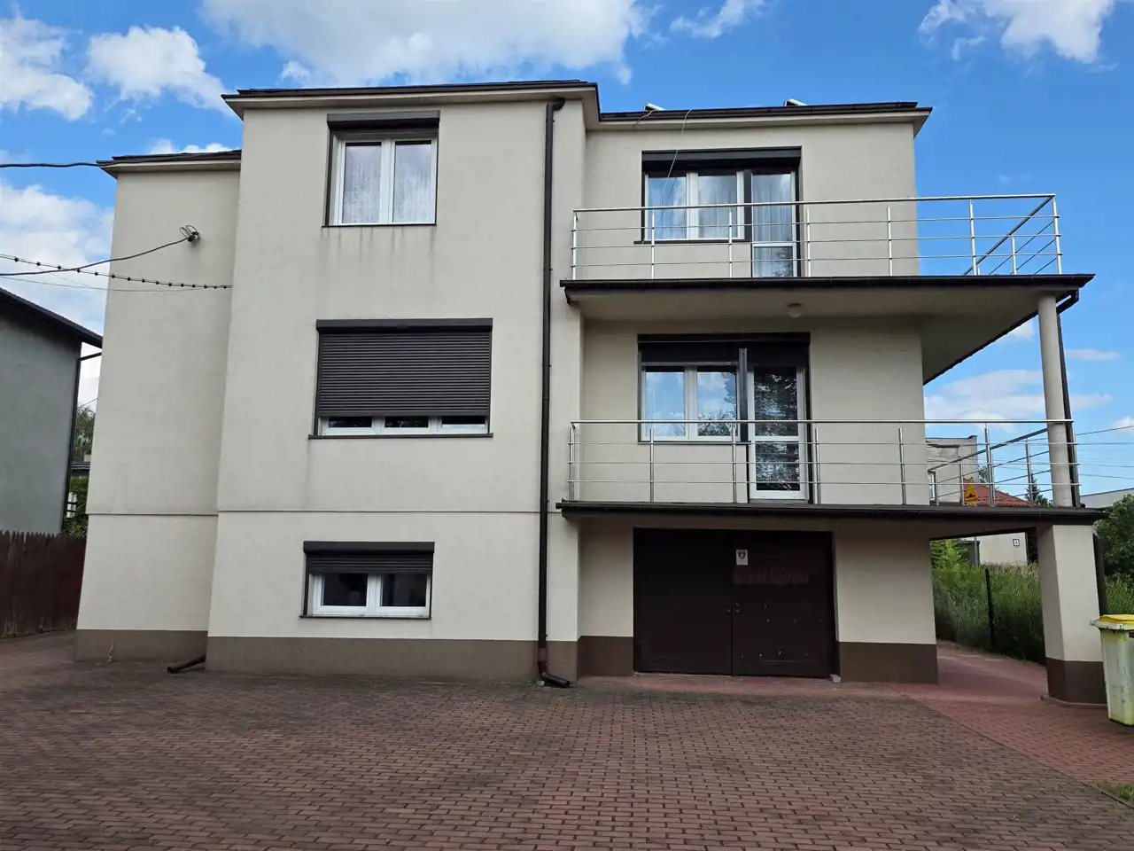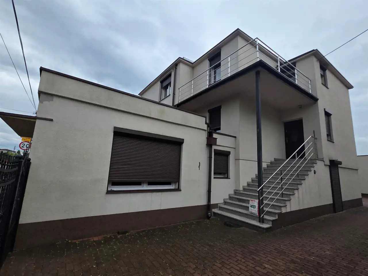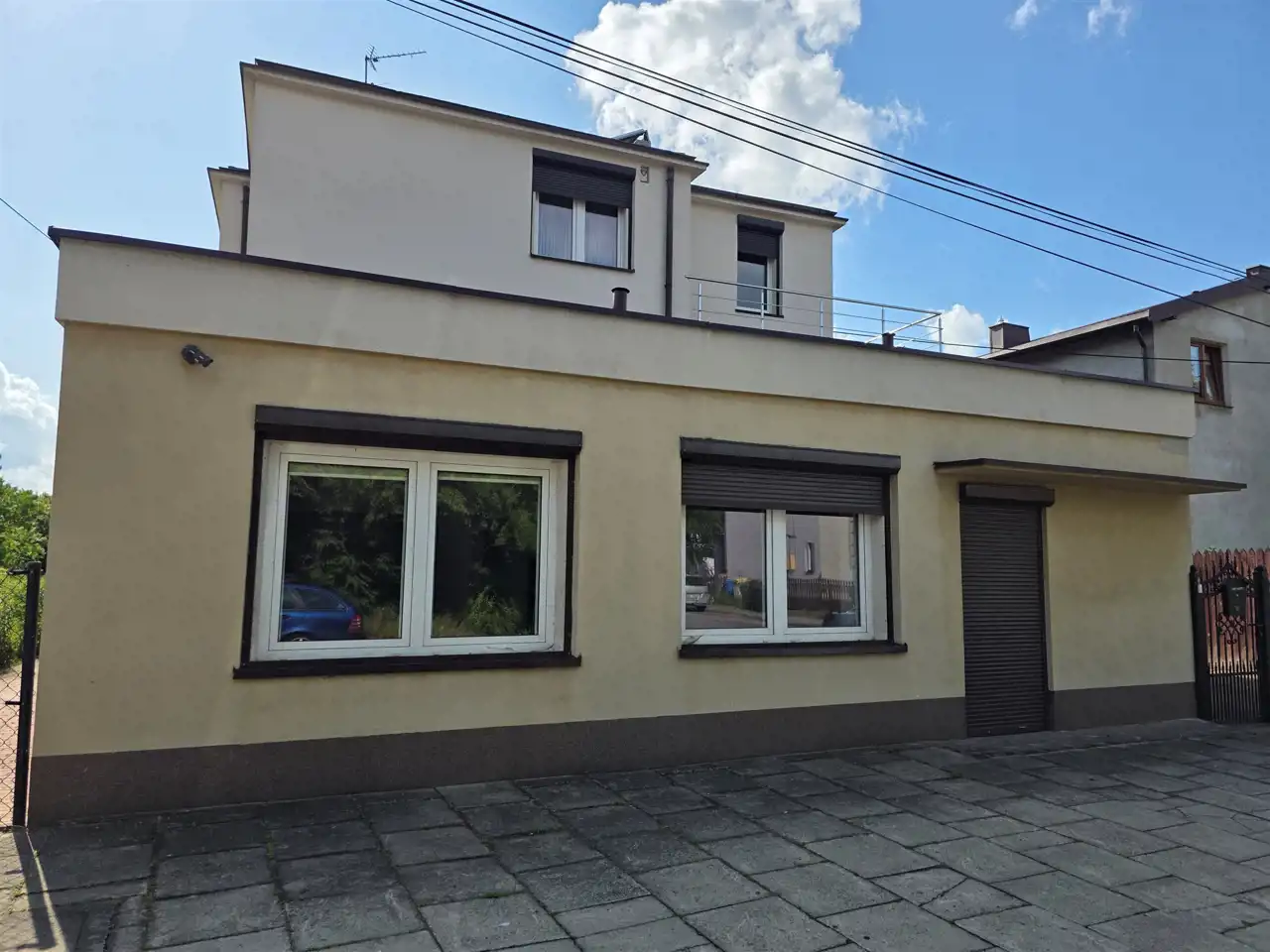 Dom posadowiony od frontu to dwukondygnacyjny budynek podpiwniczony, zbudowany z cegły, ocieplony styropianem 15cm grubości i otynkowany. Budynek z jednospadowym dachem, pokryty papą na którym w 2022 roku zainstalowano panele fotowoltaiczne o mocy 10KW (umowa na starych zasadach). Zarówno na parterze jak i piętrze znajdują się trzy przestronne balkony wyremontowane z aluminiowymi balustradami, o pow. 16m.kw i 11 m.kw. Obecnie do ogrzewania budynku wykorzystuje się gaz ziemny, a w 2020 roku zamontowano nowoczesny piec gazowy dwufunkcyjny.