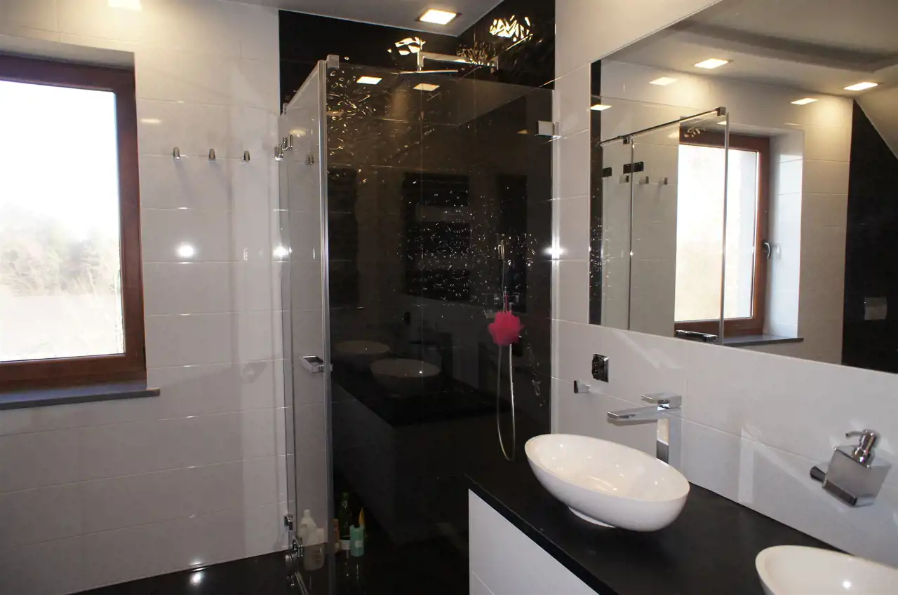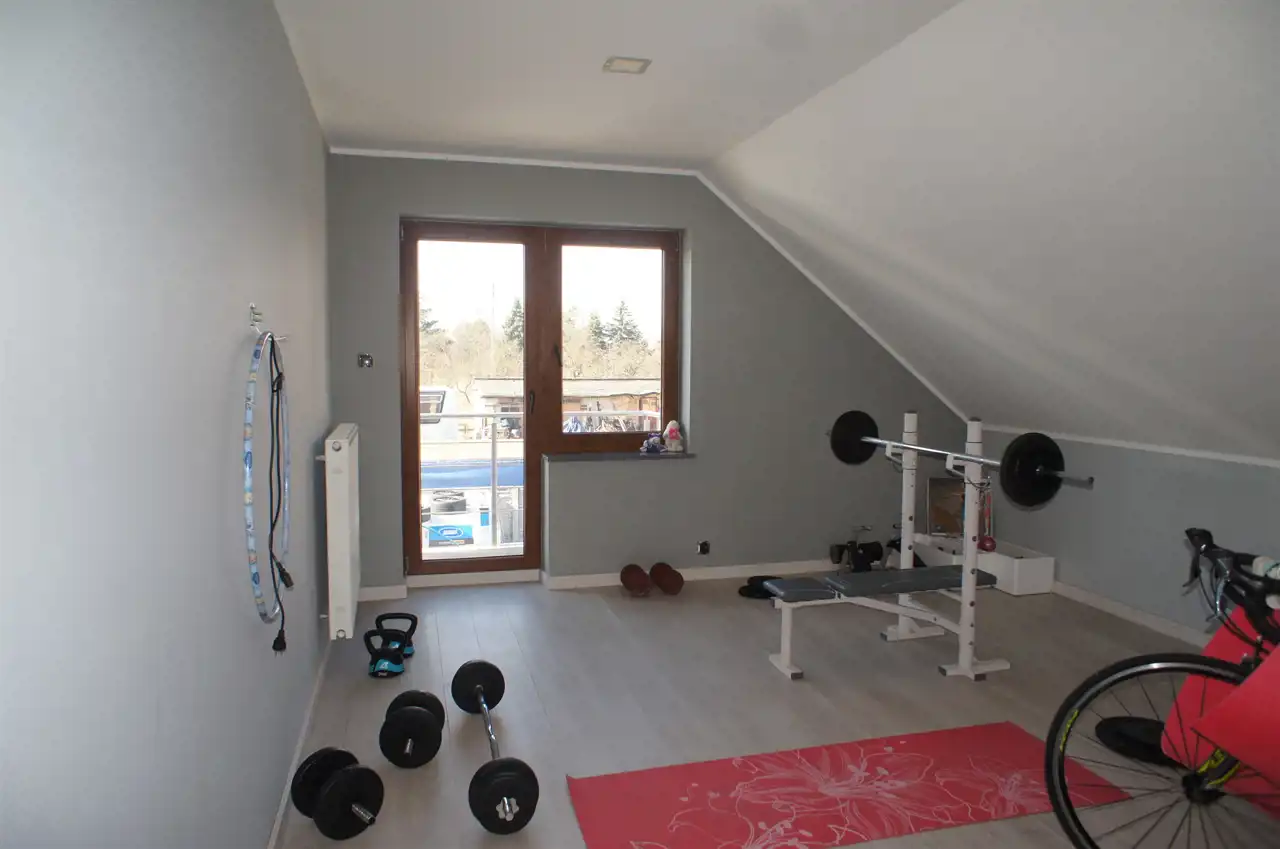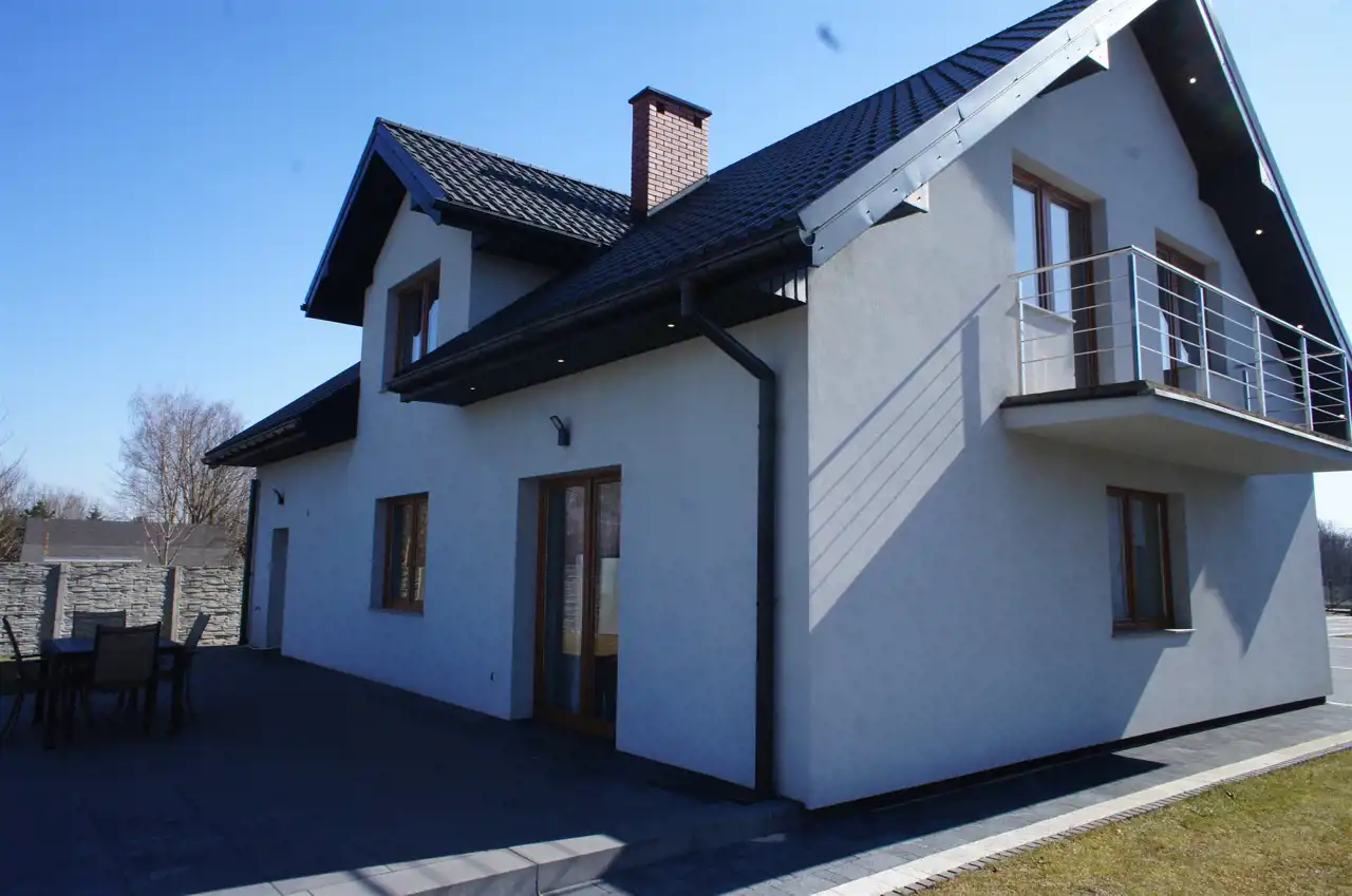 Dom wybudowany z wysokiej jakości materiałów, przestronny, wygodny i funkcjonalny. Okna PCV, parapety wewnętrzne z konglomeratu, na parterze ogrzewanie podłogowe, na piętrze - grzejniki.