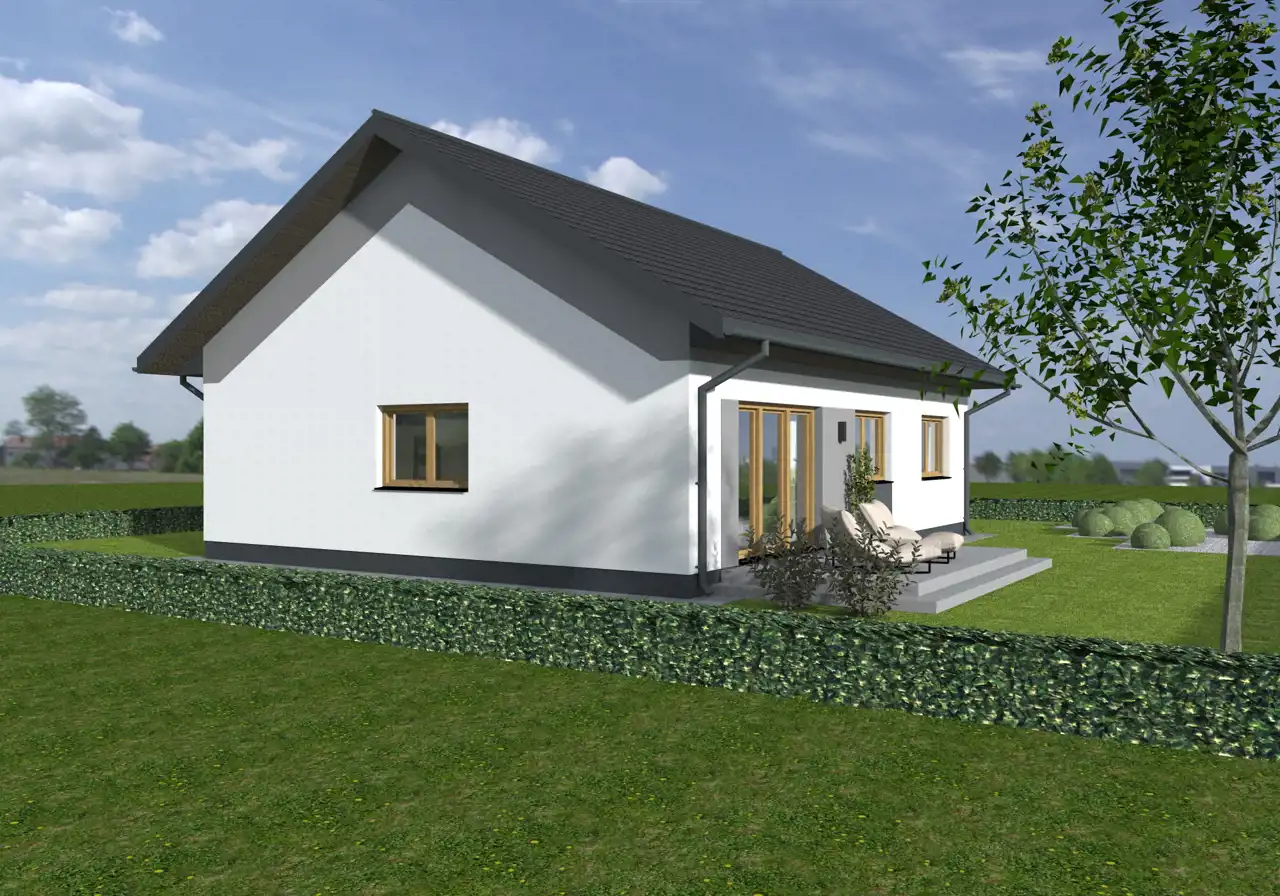 Przedmiotem oferty jest sprzedaż energooszczędnego domu położonego niedaleko Pabianic o powierzchni zabudowy 104m2. Powierzchnia użytkowa 85m2. Dom składa się z 3 ustawnych sypialni, ładnego salonu, kuchni i dwóch łazienek. Okna trzyszybowe firmy Petecki. Dom ogrzewany jest pompą ciepła firmy Atlantic Duo - w całym domu ogrzewanie podłogowe. Bardzo niskie koszty ogrzewania. Możliwość instalacji kominka. Dom jest parterowy z poddaszem. Podana cena dotyczy domu w stanie deweloperskim. Istnieje możliwość wykończenia domu "pod klucz".