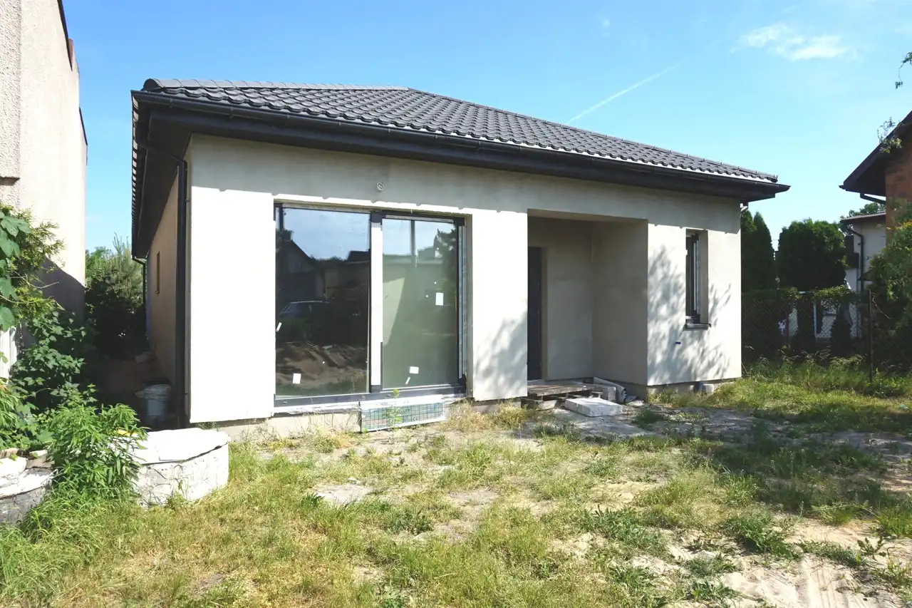 BESTATE Nieruchomości Pabianice oferuje do sprzedaży parterowy dom wolnostojący o powierzchni użytkowej 115,61 m.kw usytuowany w Pabianicach. Dom w stanie deweloperskim, wybudowany z betonu komórkowego, dach wiązarowy w konstrukcji drewnianej, wykończony blachą, wykonano podbitkę. W całym domu wykonano ogrzewanie podłogowe, przewidziane źródło ciepła - pompa ciepła (we własnym zakresie). Ściany wykończone zostały tynkiem cienkowarstwowym. Dom wybudowany według indywidualnego projektu z drobnymi zmianami.