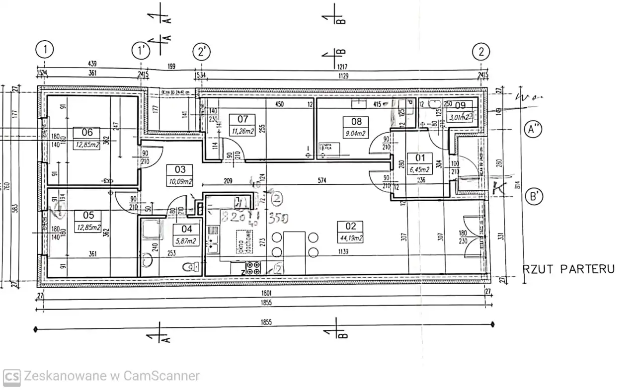 - pokój dzienny z aneksem kuchennym 44,19 m.kw