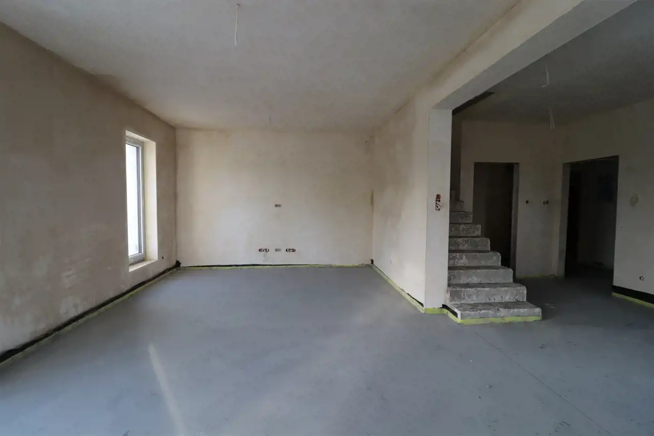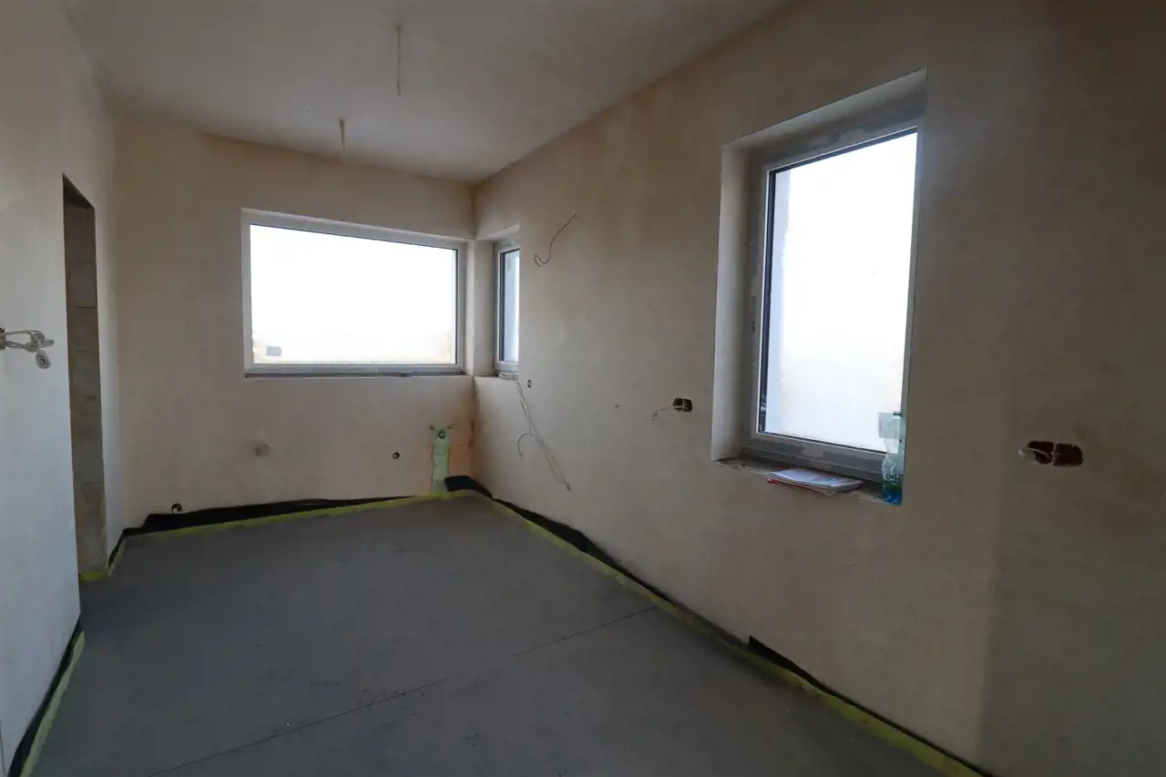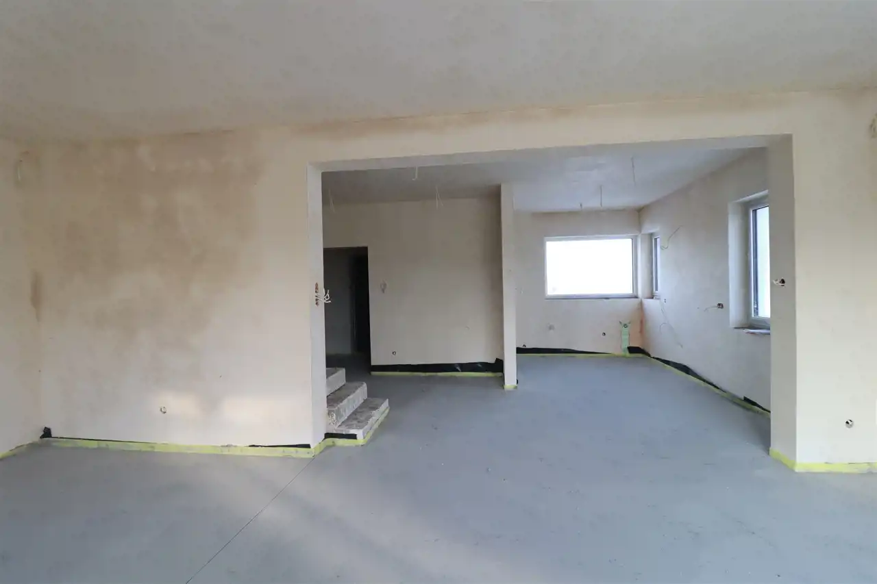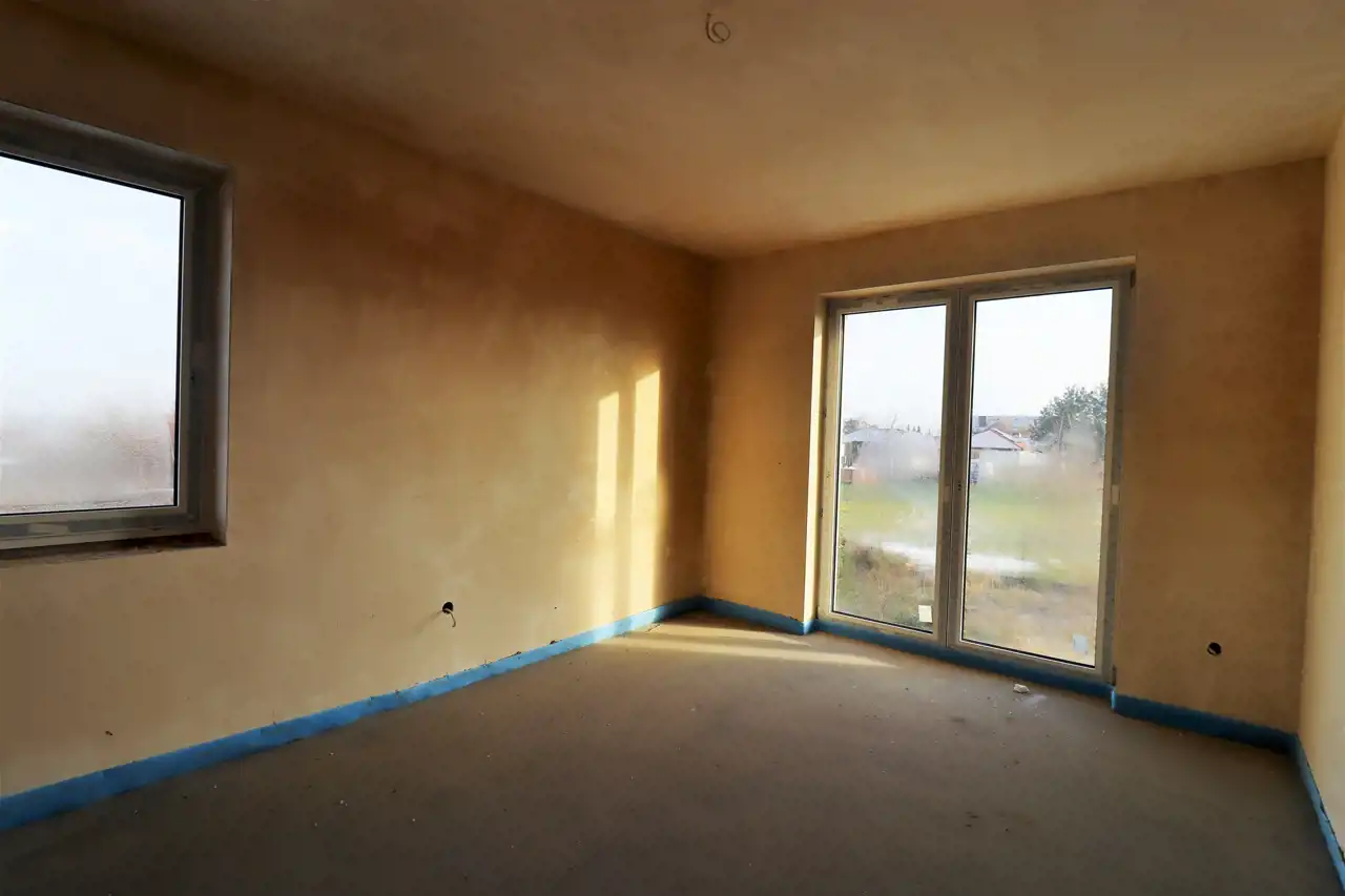 Budynek w stanie deweloperskim, na działce o pow. ok. 650 m², składający się z 5 pokoi ( w tym 3 sypialni) , kuchni ze spiżarnią, otwartego salonu z jadalnią, 3 łazienek oraz pomieszczenia gospodarczego typu pralnia.