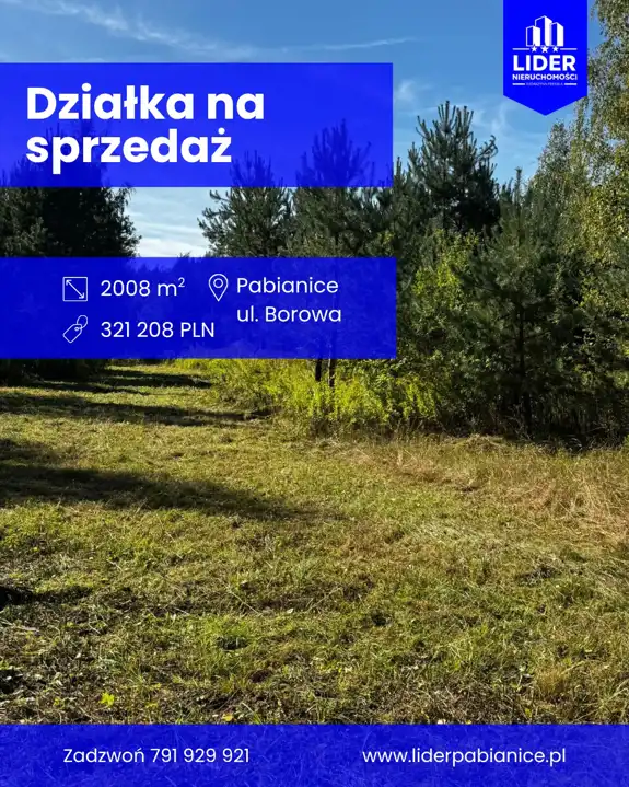 Na sprzedaż: Działka budowlana 2 008 m² – Pabianice, ul. Borowa
