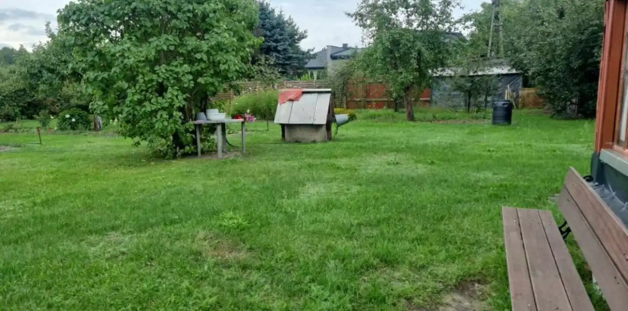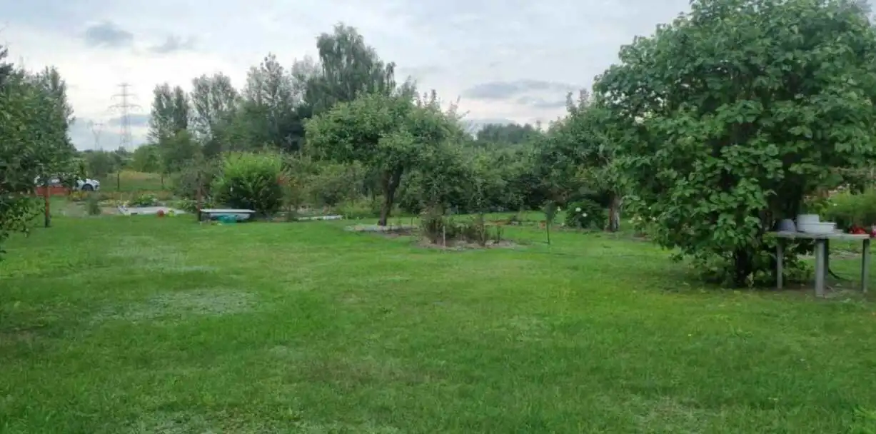 Media: w drodze tuż przed działką kanalizacja, woda miejska na działce + studnia, prąd na działce obok.
