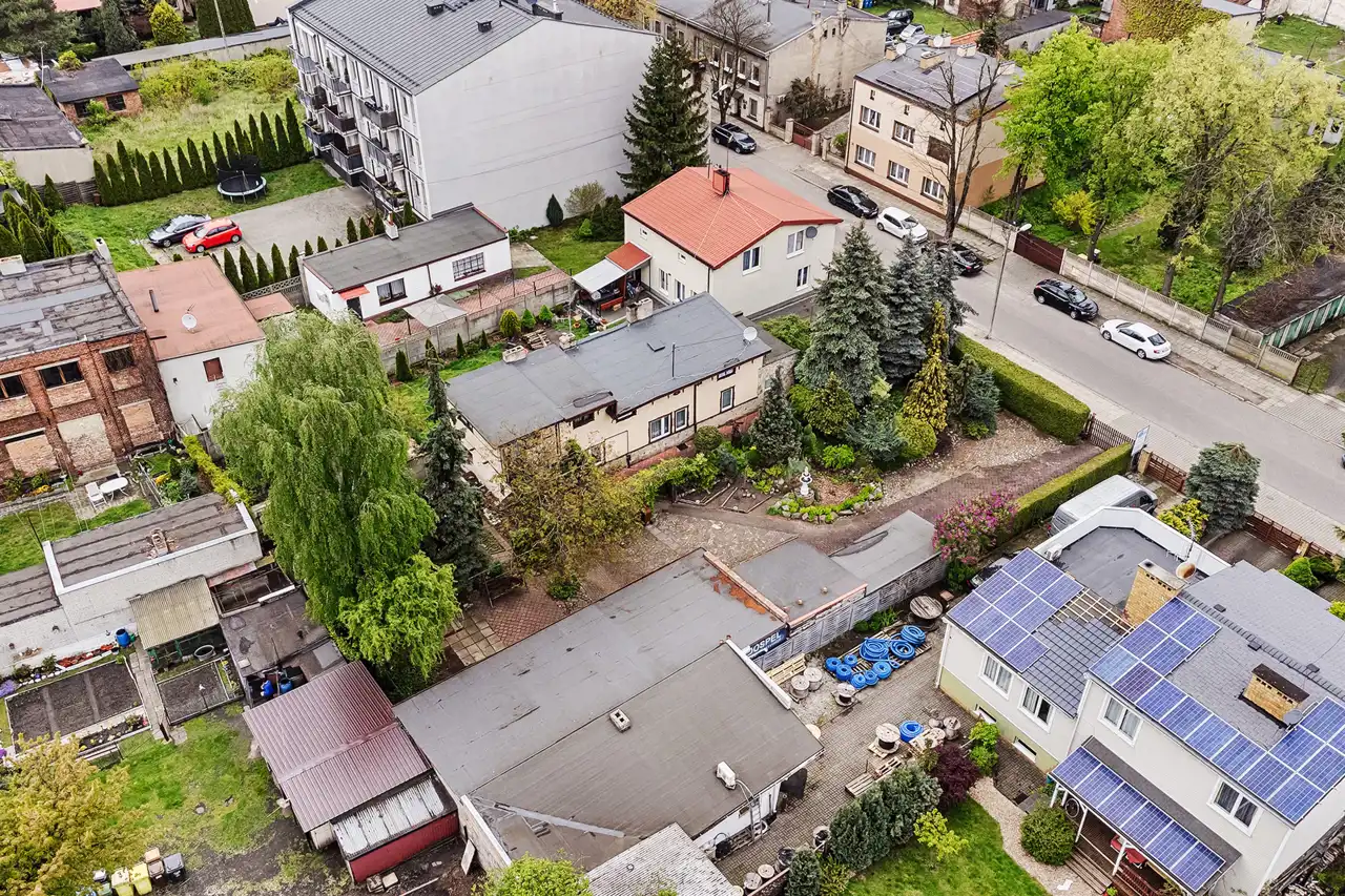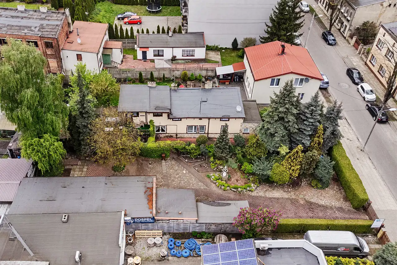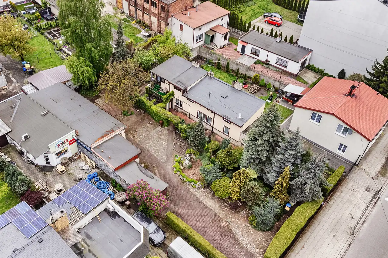 Działka zabudowana domem jednorodzinnym i budynkiem gospodarczym.