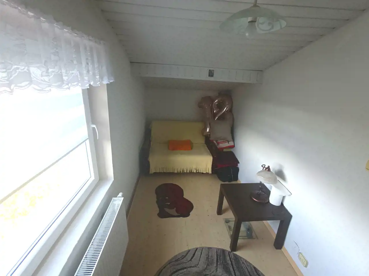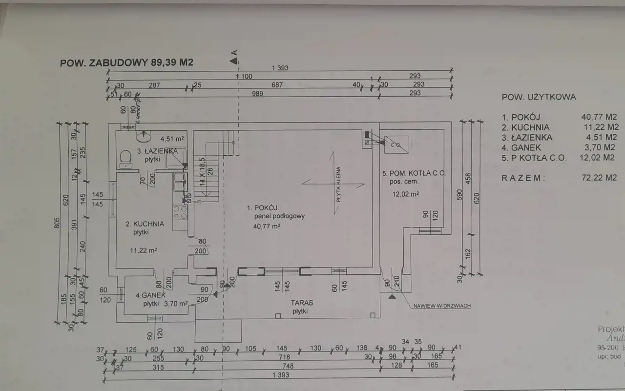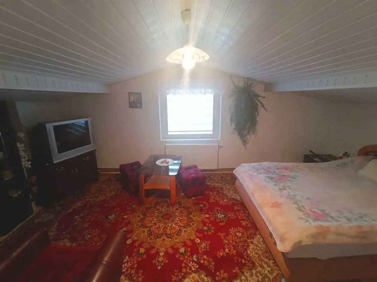 Dom dwukondygnacyjny z poddaszem użytkowym i werandą zbudowany z cegły pełnej, po termomodernizacji. Dach o konstrukcji drewnianej pokryty blachą dachówkopodobną z ociepleniem wełną mineralną. Dom składa się z pokoju o pow. 40,77 m.kw, kuchni o pow. 11,22 m.kw, łazienki z wc o pow. 4,51 m.kw, ganku o pow. 3,70 m.kw oraz pomieszczenia gospodarczego o pow. 12,02 m.kw. Poddasze użytkowe o pow. ok.39 m.kw składa się z trzech pokojów o łącznej pow. ok.36 m.kw oraz wc o pow. ok.3 m.kw. Na podłogach położone są płytki i panele. Ściany malowane, położone panele, płytki, siding. Ogrzewanie kominkowe z płaszczem wodnym (grzejniki oraz podgrzewanie wody). Okna pcv, drzwi antywłamaniowe.