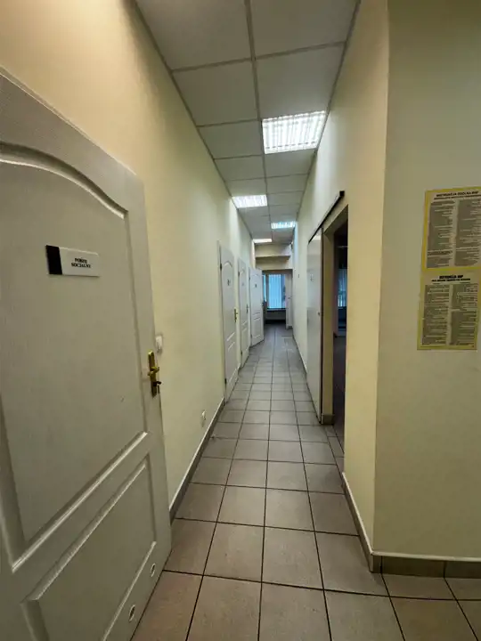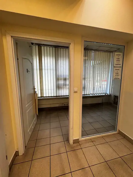 - Przestronna sala główna z dużymi witrynami- idealna na salę sprzedażową, recepcję itp.,