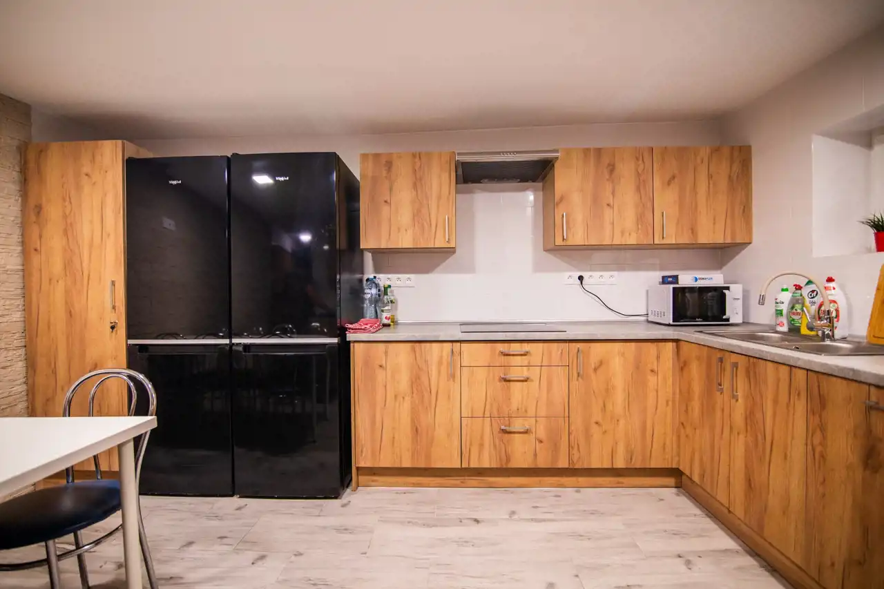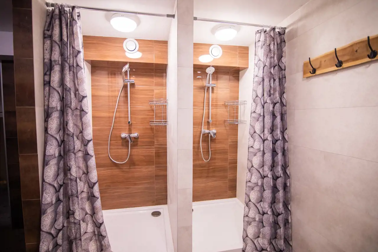 Parter: duża kuchnia, pokój z prywatną łazienką, pralnia, toalety oraz 2 prysznice