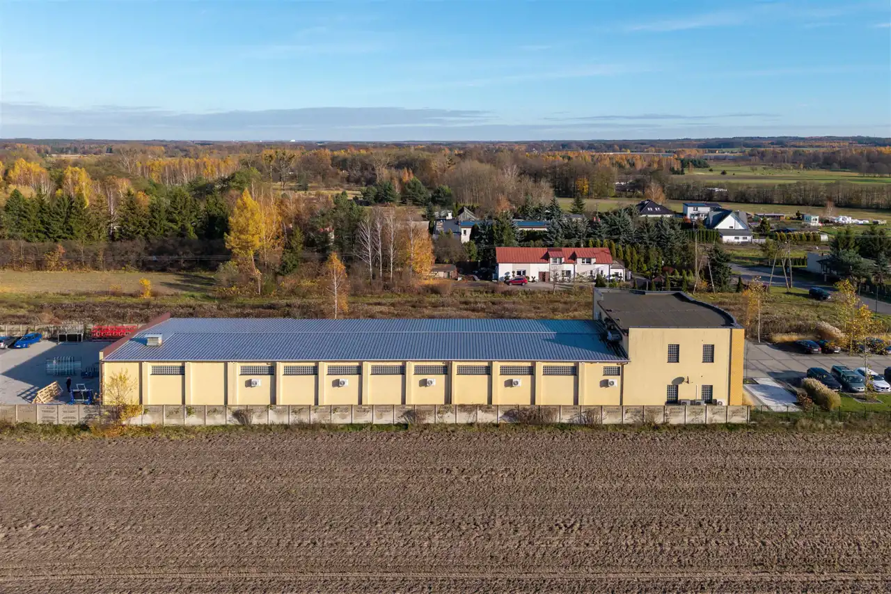 Na działce znajduje się również hala namiotowa stalowa o pow. ok. 600 m², stanowiąca uzupełnienie funkcji magazynowej.