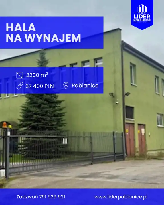 Do wynajęcia hala magazynowo-produkcyjna o powierzchni 2 200 m², zlokalizowana w doskonałym punkcie Pabianic – bezpośrednio przy centrum handlowym Tkalnia.