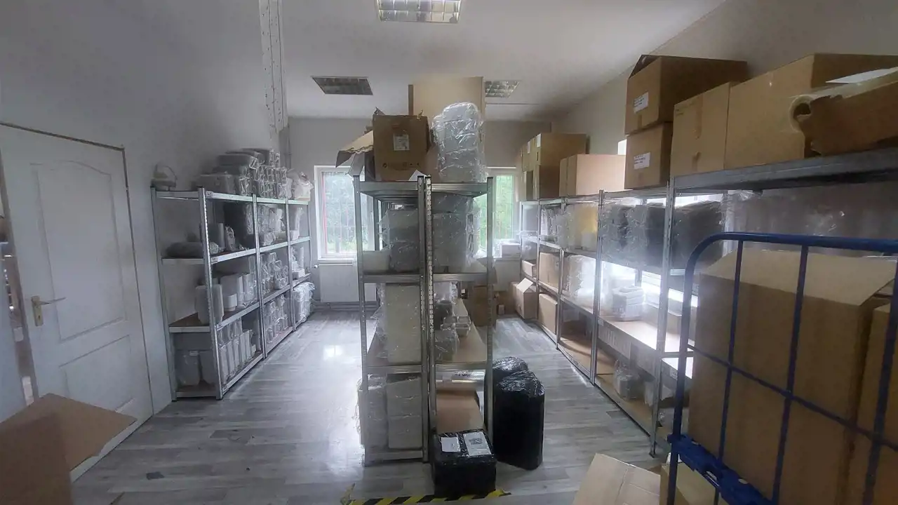 MEDIA: gaz z sieci, energia elektryczna (moc 100 kW), woda, szambo (zbiornik 12 tys. litrów), wentylacja, klimatyzacja, Internet - światłowód.