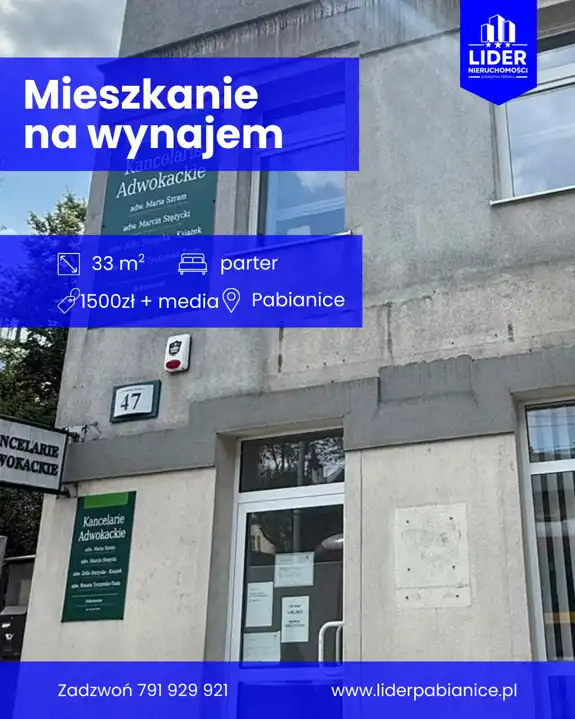 Lokal do wynajęcia – 33 m² – Pabianice, ul. Warszawska – 1500 zł + media