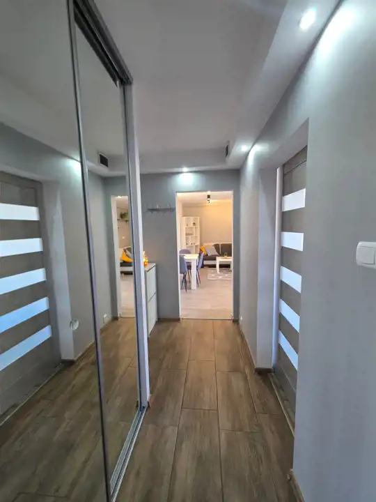 Mieszkanie po gruntownym remoncie, nie wymaga nakładów finansowych. Właściciel sprzedaje lokal z pełnym wyposażeniem. W pokoju na podłodze położono panele, na ścianach gładź gipsową pomalowana. W kuchni, łazience i przedpokoju położono płytki i terakotę. Wszystkie pomieszczenia gustownie i funkcjonalnie zaaranżowano i wyposażono w nowe meble. Kuchnia zaopatrzona w nowoczesny sprzęt AGD z płytą indukcyjną, zmywarką i lodówką. W łazience znajduje się pralka, umywalka, kabina prysznicowa i szafki łazienkowe.