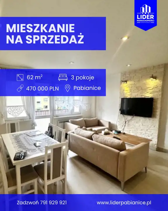 Na sprzedaż przestronne i zadbane mieszkanie o powierzchni 62 m², położone na 1. piętrze w dobrze utrzymanym budynku przy ul. 20 Stycznia w Pabianicach.