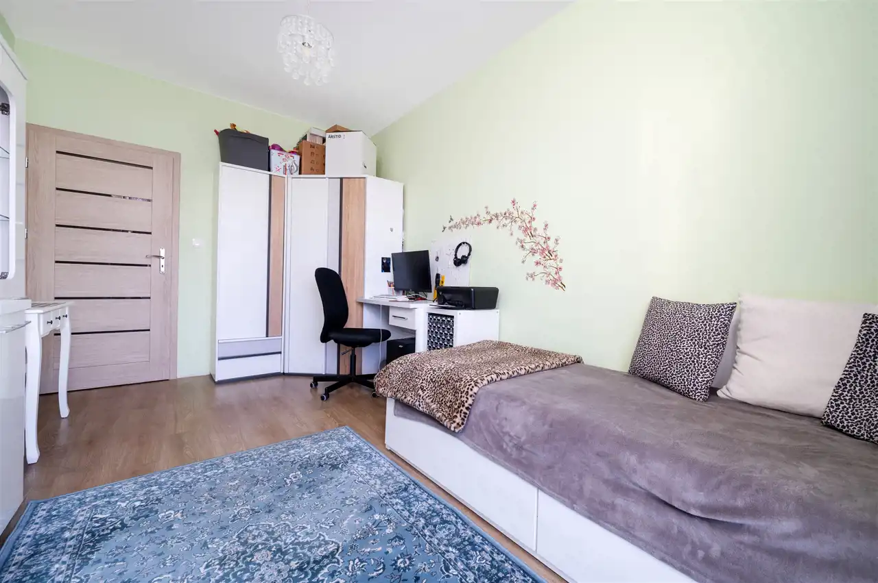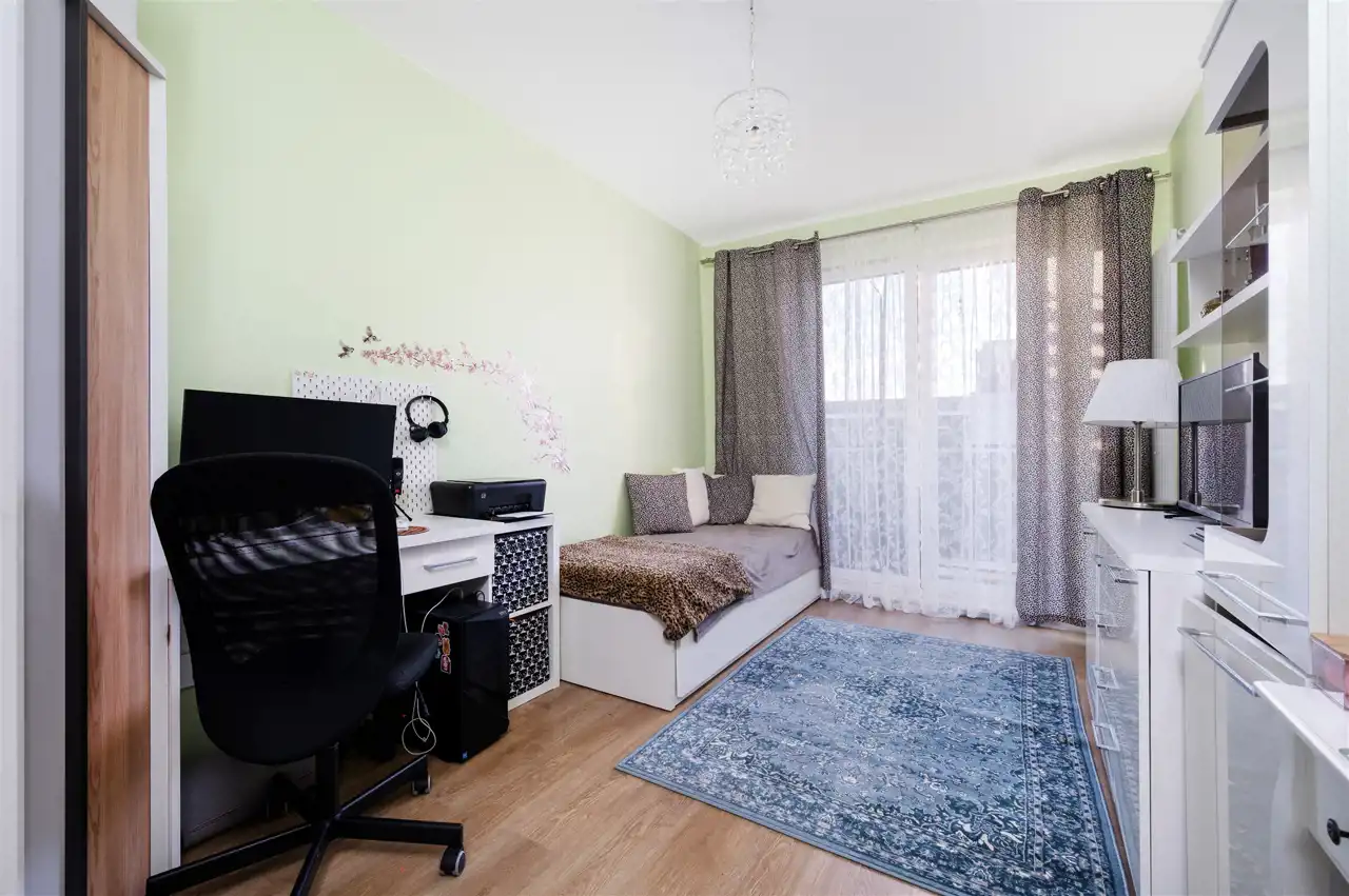 - Duży balkon na szerokość całego mieszkania