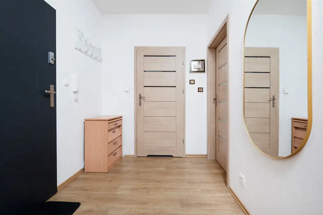 Oferujemy nowoczesny, wykończony apartament o powierzchni 53,1 m², położony w prestiżowej lokalizacji – osiedle zamknięte, w otoczeniu zieleni , tuż przy lesie i w pobliżu ośrodka MOSiR