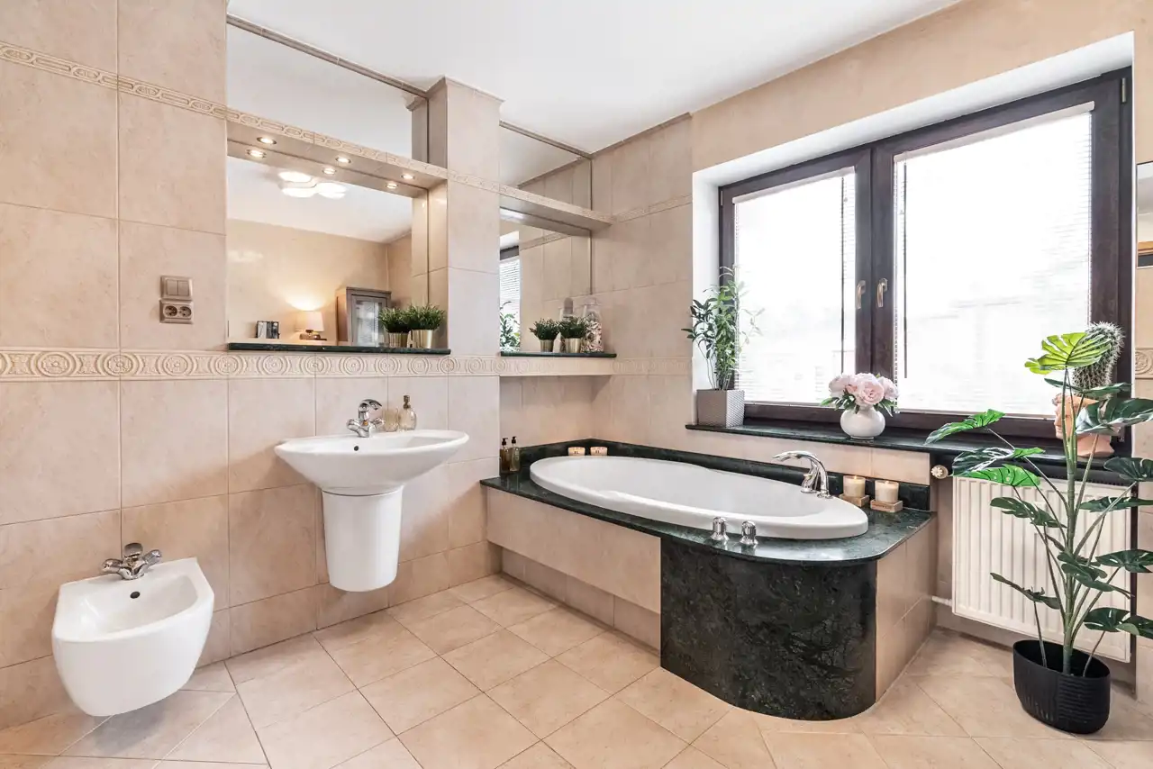 ✔ Ekskluzywny pokój kąpielowy - wanna, prysznic, naturalny kamień AGAT, ogrzewanie podłogowe elektryczne, a także umywalka, muszla WC i bidet renomowanej marki Villeroy & Boch