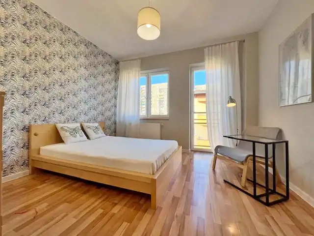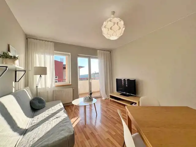 • Pokoje:Dwa przestronne, w pełni umeblowane pokoje, idealne na salon i sypialnię.