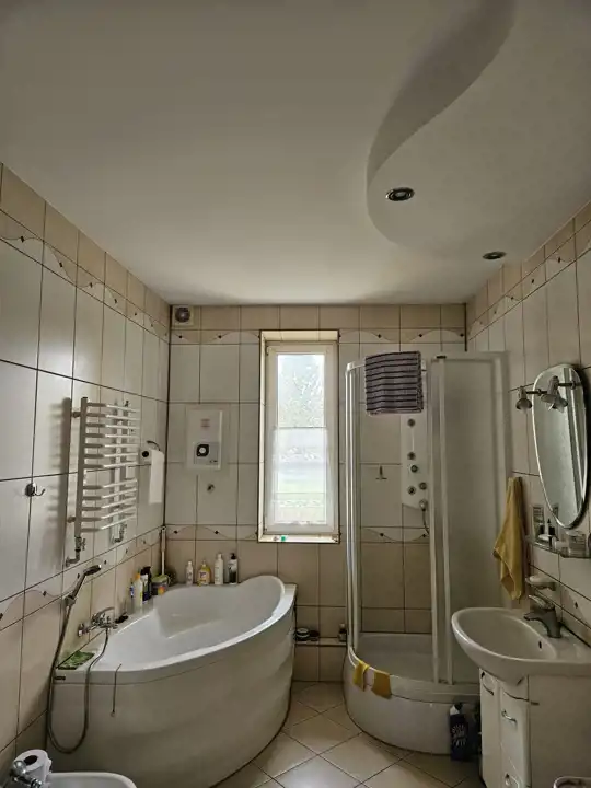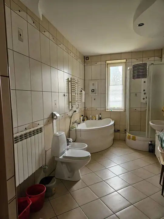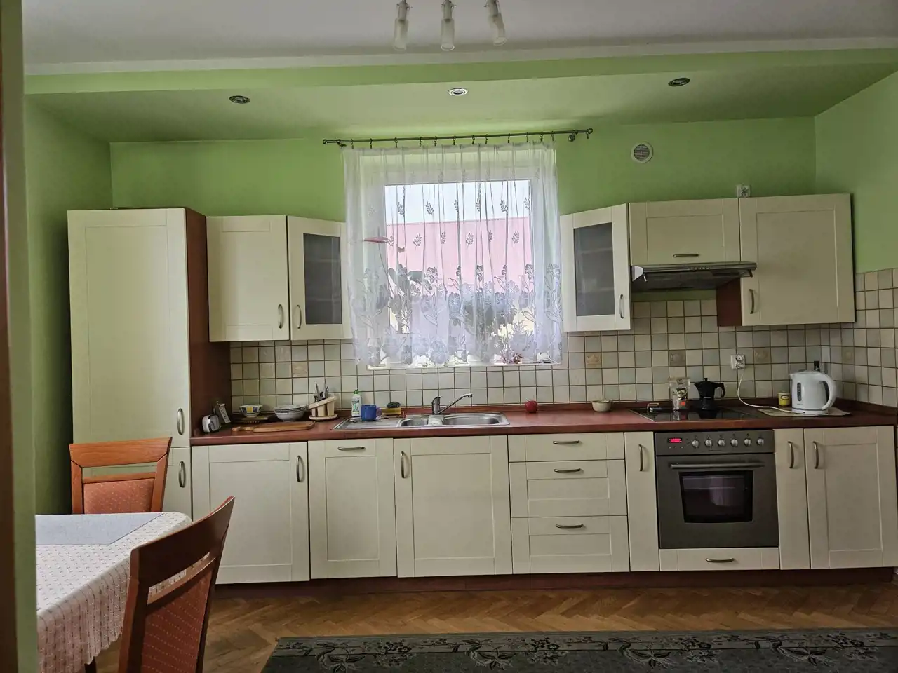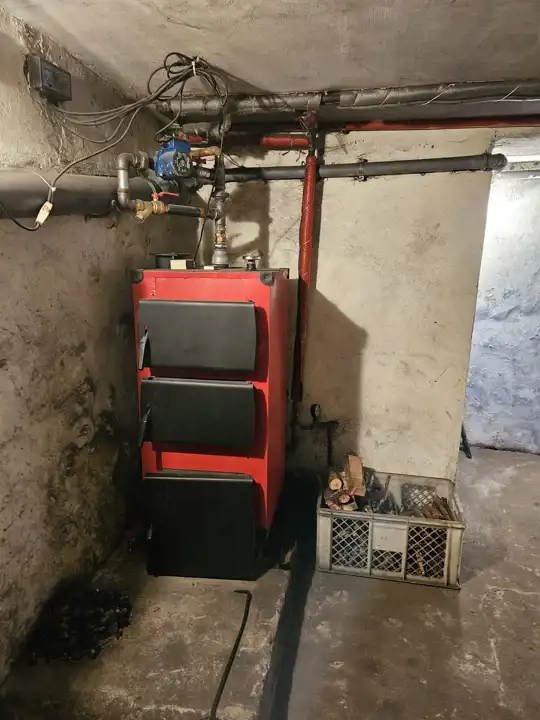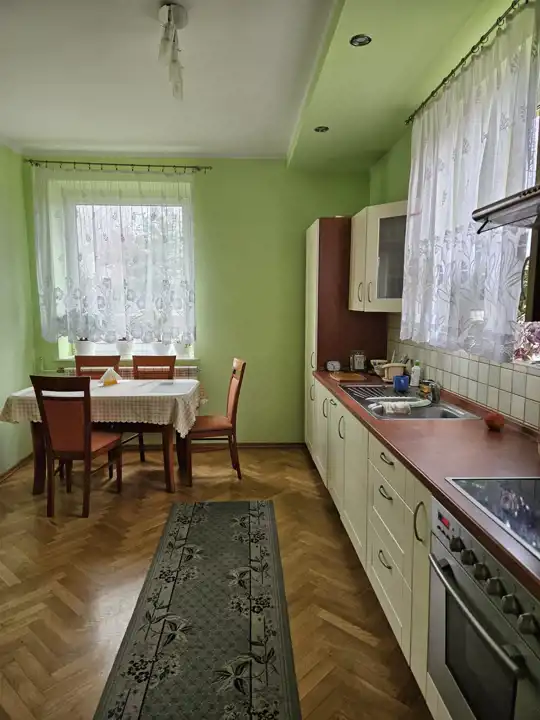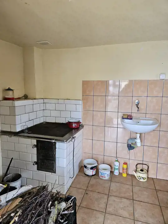 - Ogrzewanie -centralne, węglowe. Ciepła woda z piecyka elektrycznego, przepływowego. Dodatkowo w kuchni piec kaflowy.