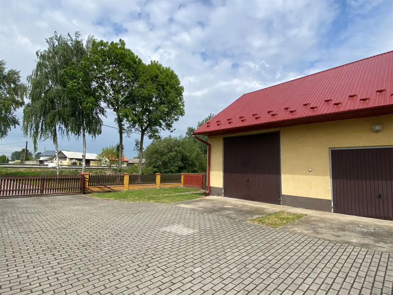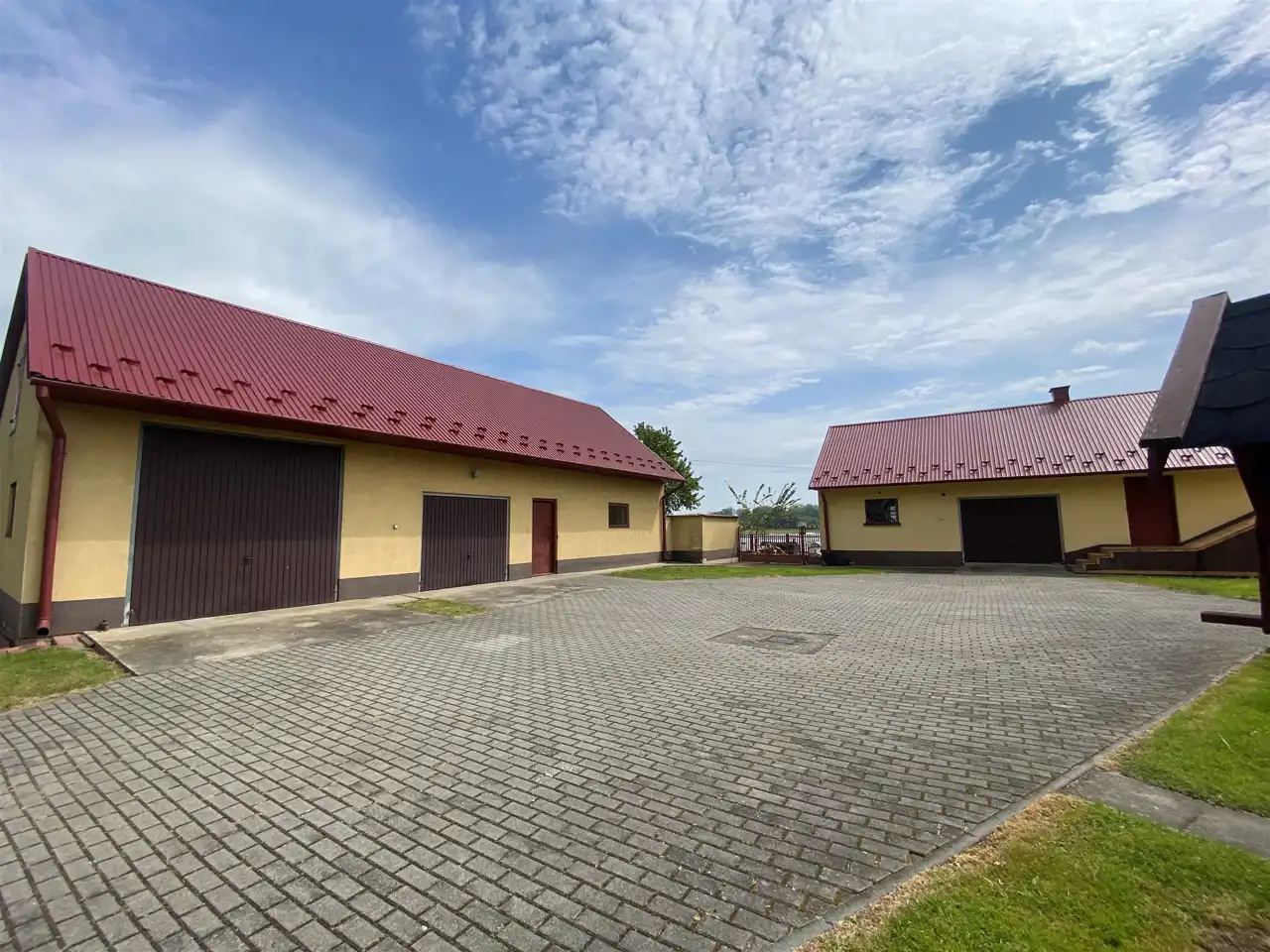 - Na działce znajdują się również: Budynek murowany z pustaka, kryty blachą o powierzchni całkowitej 140m2, w skład którego wchodzą, duży garaż (44,80m2), mniejszy garaż z zapleczem (20,70m2 oraz 13,30m2), pomieszczenie gospodarcze typu magazyn (60m2)