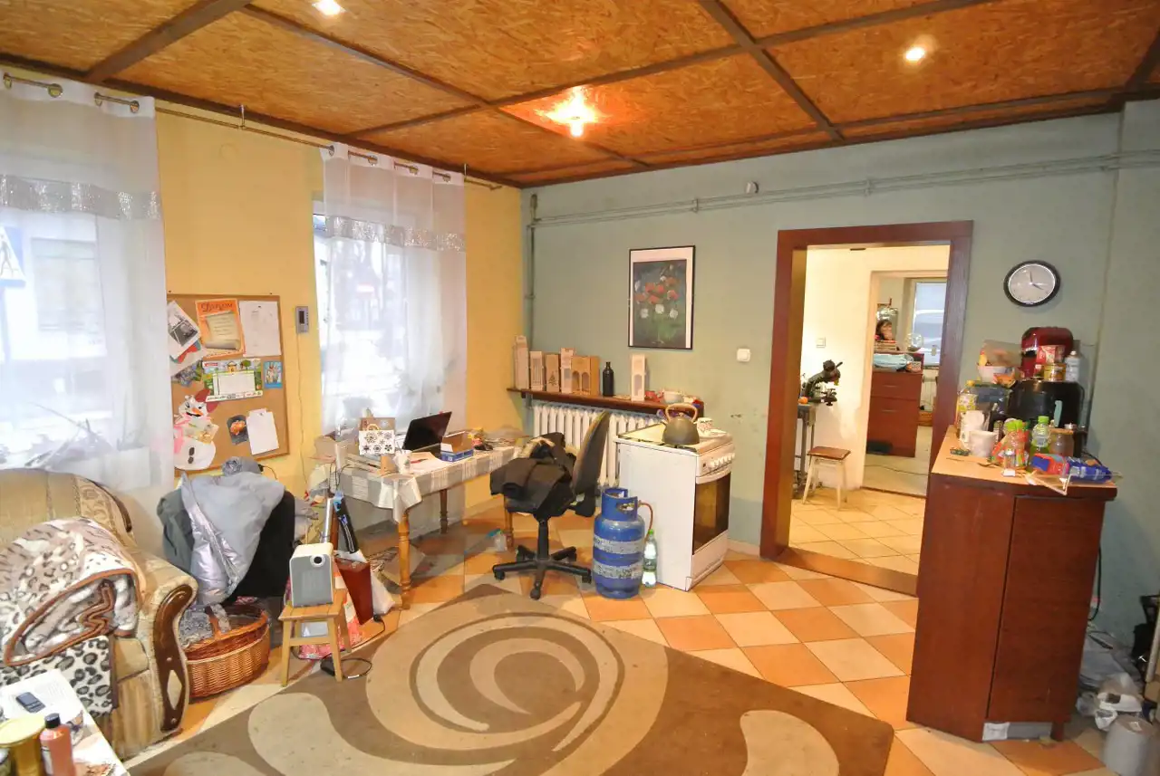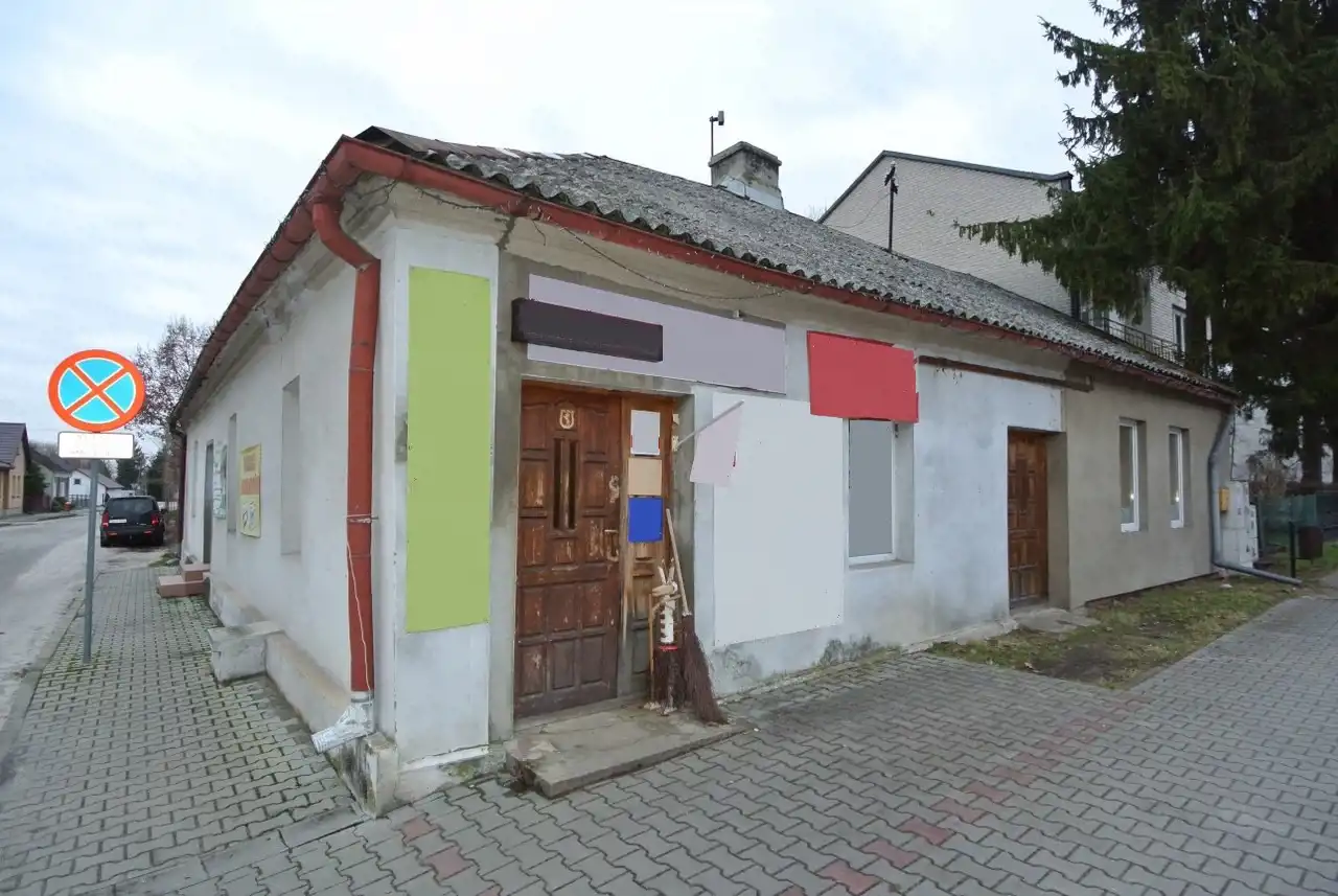 For sale: A mixed-use residential-commercial property with an area of approximately 155 sqm located in the center of Pacanów, in the buski district. The house is situated on a plot of land measuring 700 sqm. The property comprises two retail spaces, a room, a bathroom with a toilet, 2 storage rooms, and a hallway. The building is constructed of brick and stone, covered with asbestos cement, partially basemented, and heated by a coal furnace. The electrical, heating, and plumbing systems have been replaced.