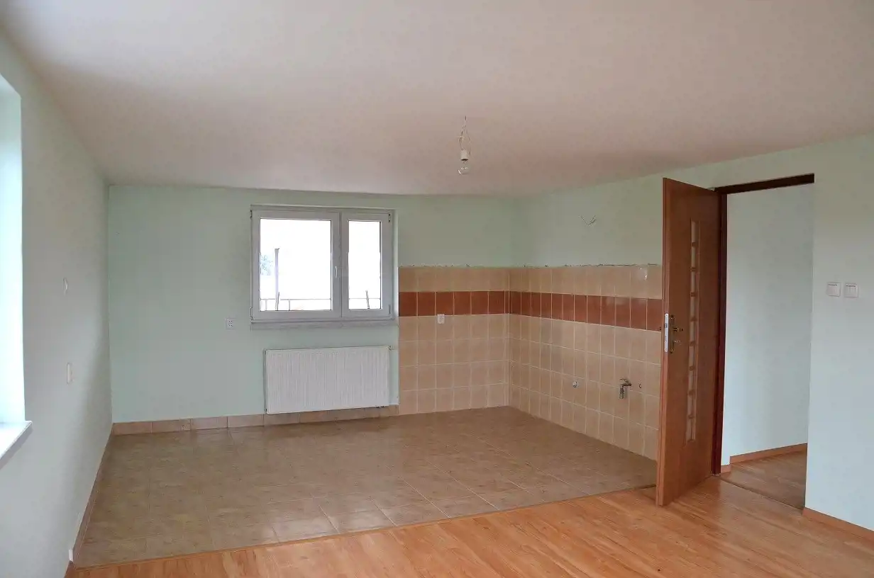 Na drugim piętrze: pokój połączony z aneksem kuchennym, dwa pokoje, przedpokój, łazienka, WC.