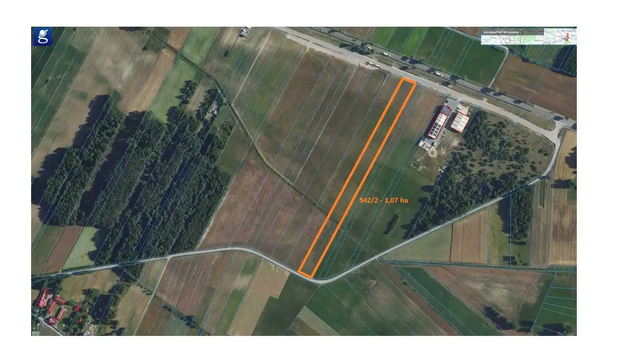 - 542/2 - 1,07 ha, wymiary ok. 26,5 m/403 m