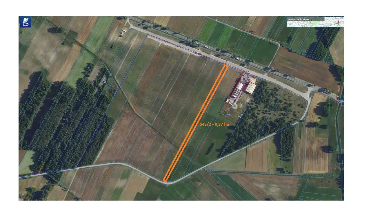 - 543/2 - 0,37 ha, wymiary ok. 9 m/396 m