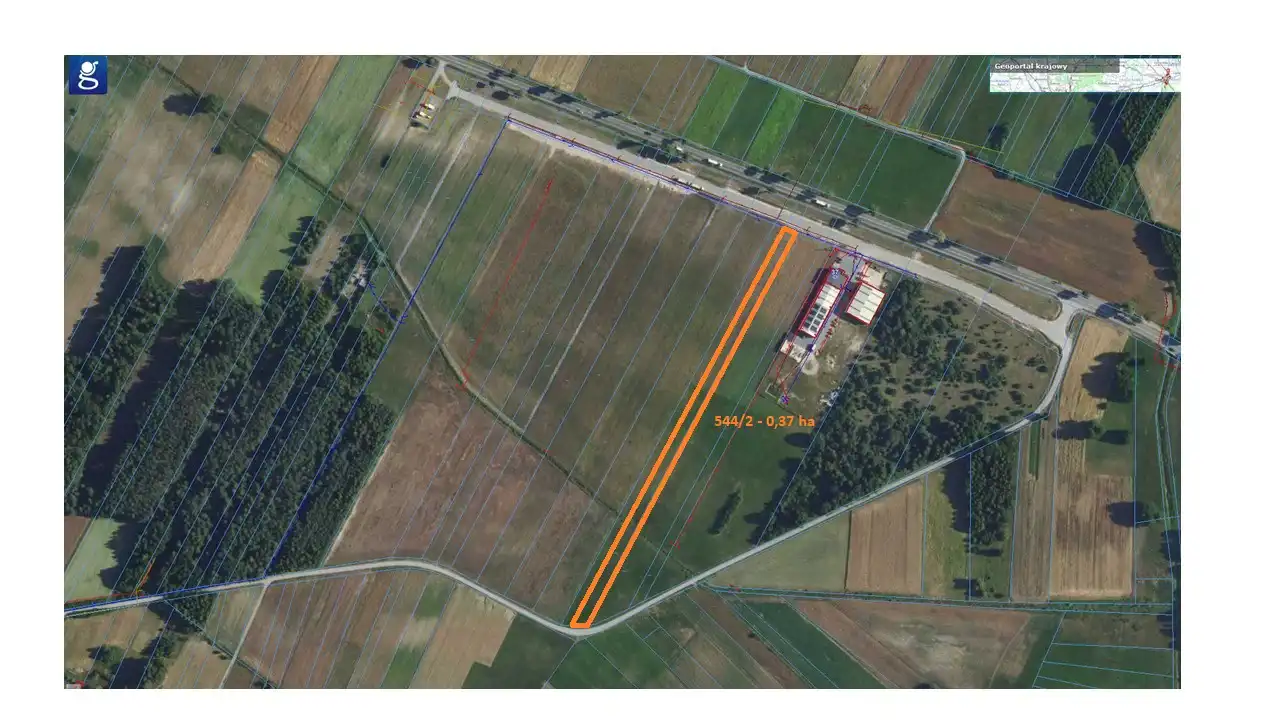 - 544/2 - 0,37 ha, wymiary ok. 9 m/396 m