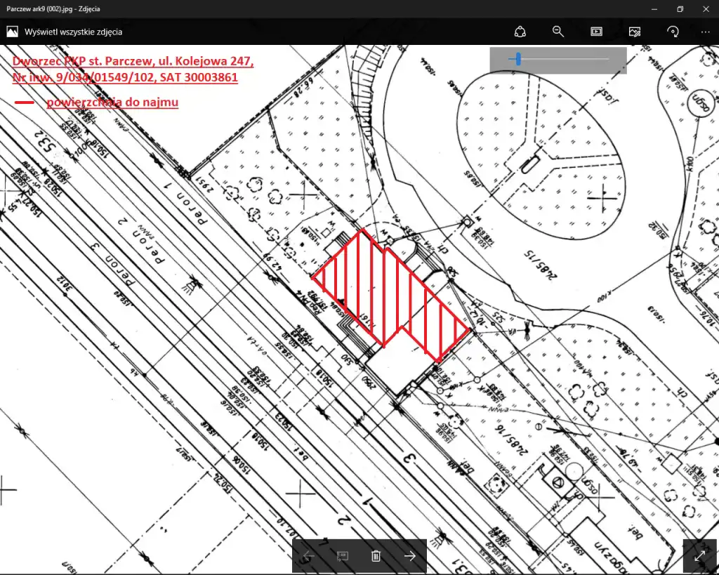 pomieszczeń o łącznej powierzchni 241,50 m2 usytuowanych w budynku dworca PKP w Parczewie przy ul. Kolejowej posadowionego na działce nr ewid. 2485/15, obręb Parczew . Budynek znajduje się ok. 2 km od centrum miasta. Dworzec jest usytuowany przy czynnej linii kolejowej nr 30 relacji Lublin Parczew. Dobre skomunikowanie z miastem. Stan techniczny budynku dobry.