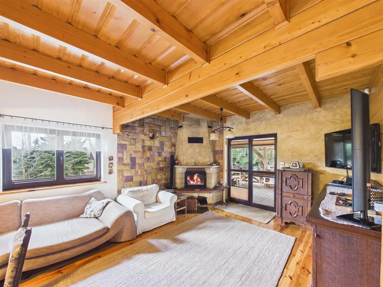 Przestronny salon z z kominkiem i wyjściem na zadaszony taras- 40m2