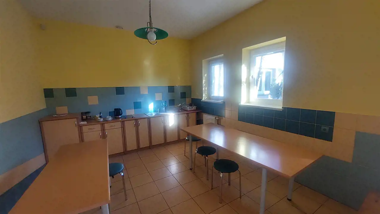 Media i instalacje : ogrzewanie olejowe, ekologiczna oczyszczalnia , klimatyzacja w pomieszczeniach biurowych, energia elektryczna, monitoring i system alarmowy, Internet.