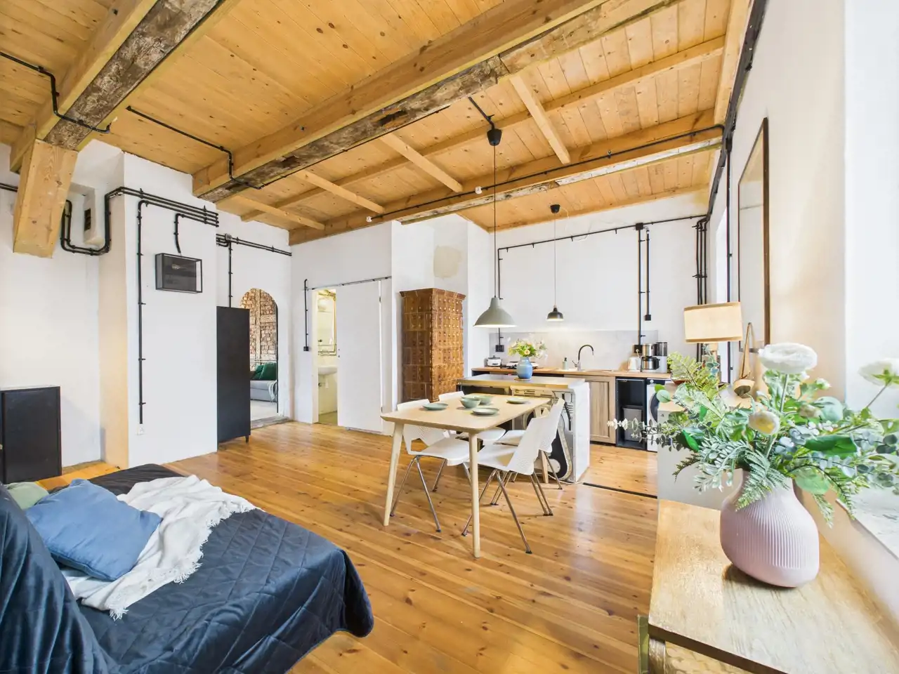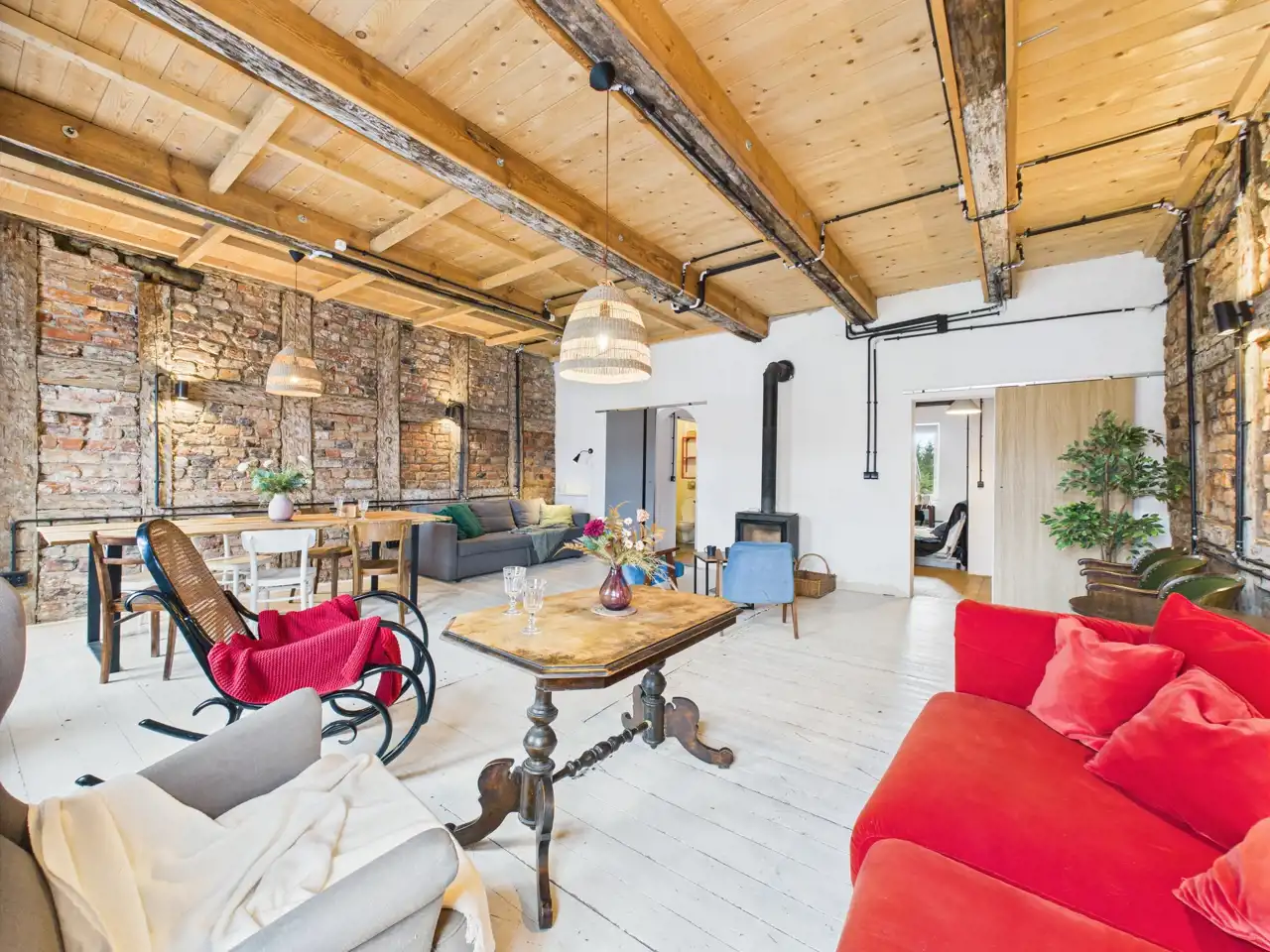 Otwarte wnętrze daje ogromne możliwości adaptacyjne- możesz stworzyć tutaj zarówno komfortowe mieszkanie, jak i designerską przestrzeń do pracy lub działalności .