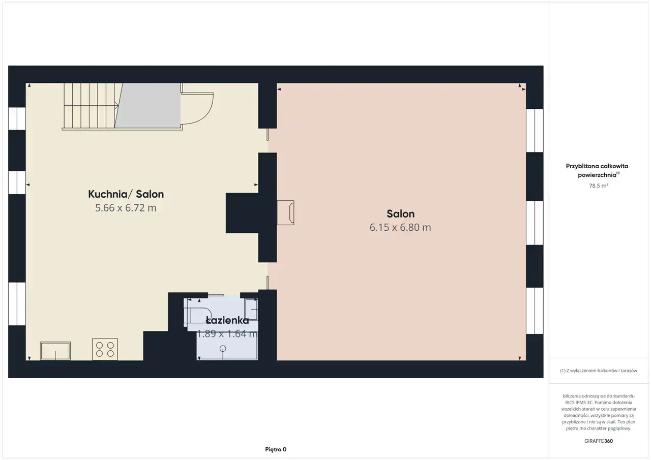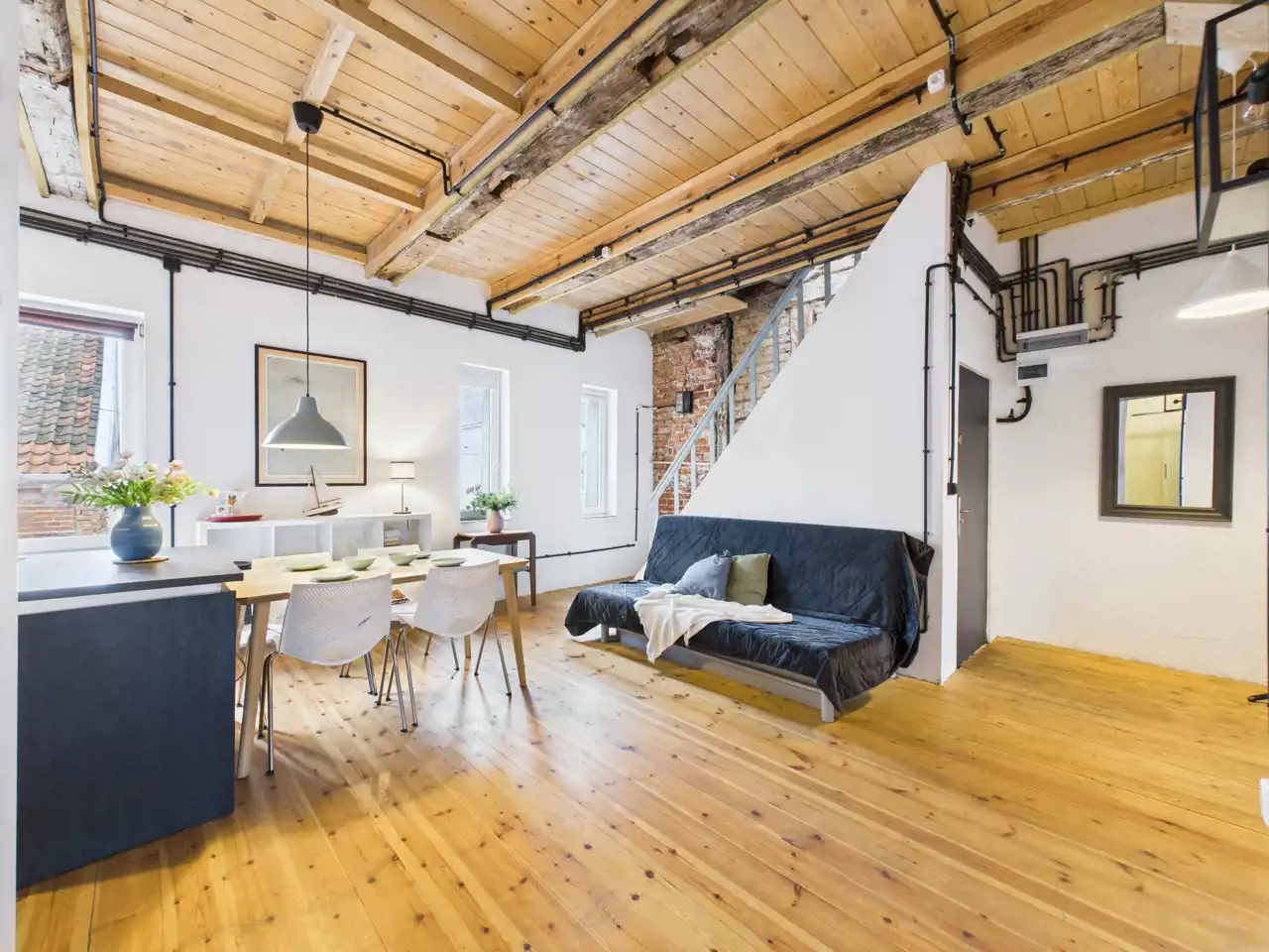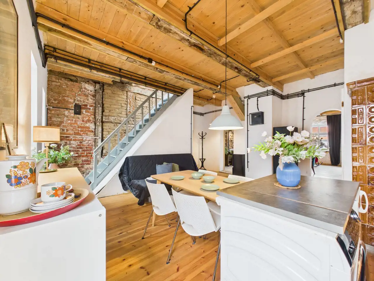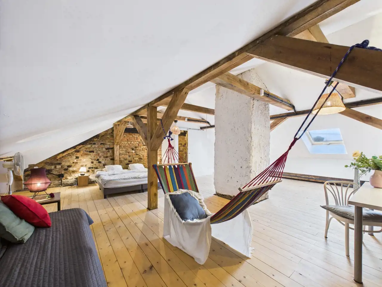 Loft umiejscowiony jest w 200 letniej kamienicy , składa się z przestronnego salonu o powierzchni 42 m2, aneksu kuchennego połączonego z jadalnią i mniejszym salonem o powierzchni 38 m2 oraz łazienki z WC o powierzchni 3 m2.
