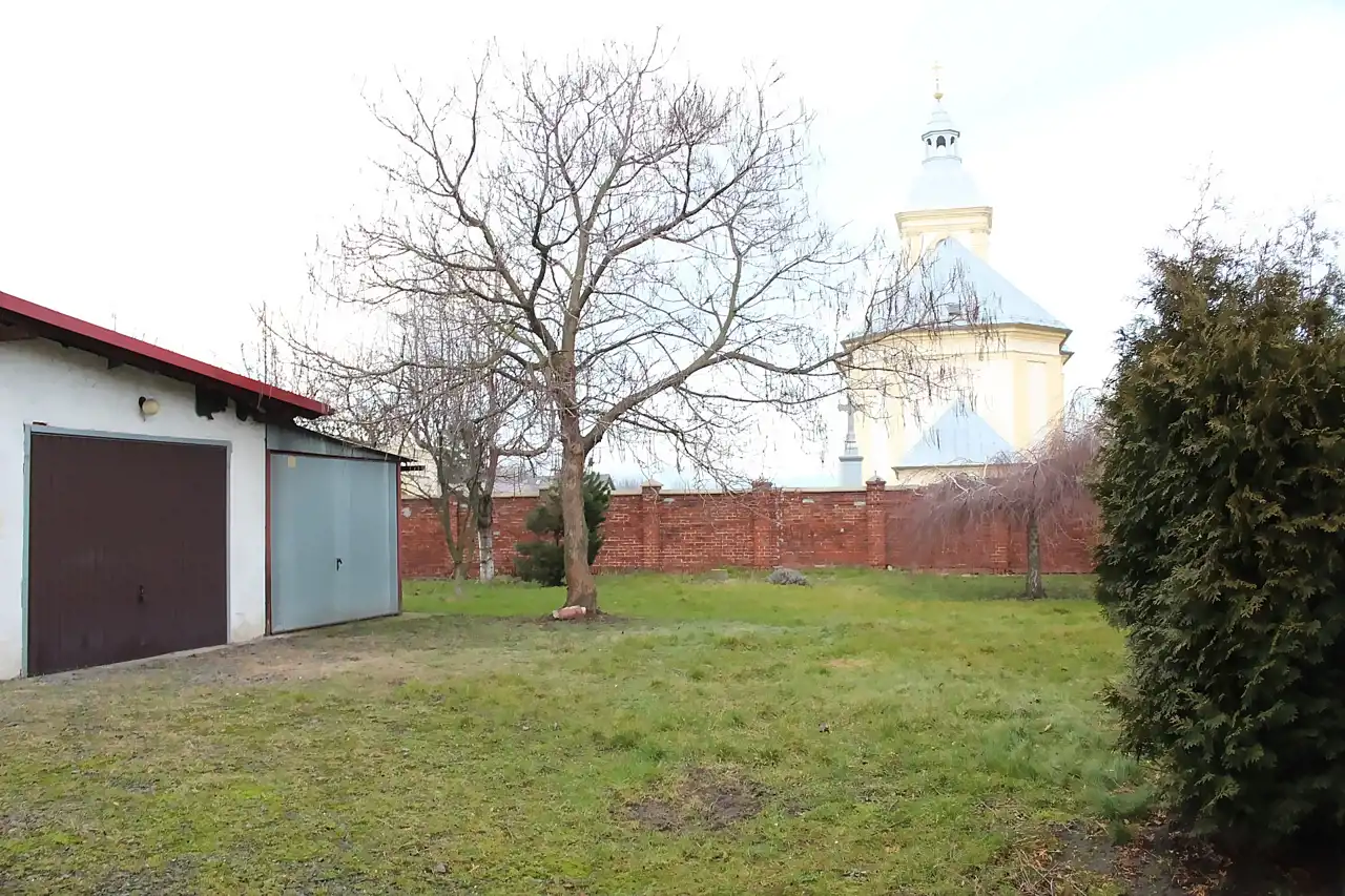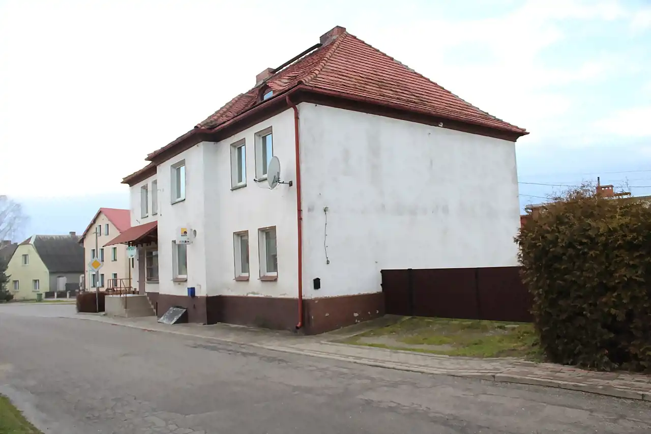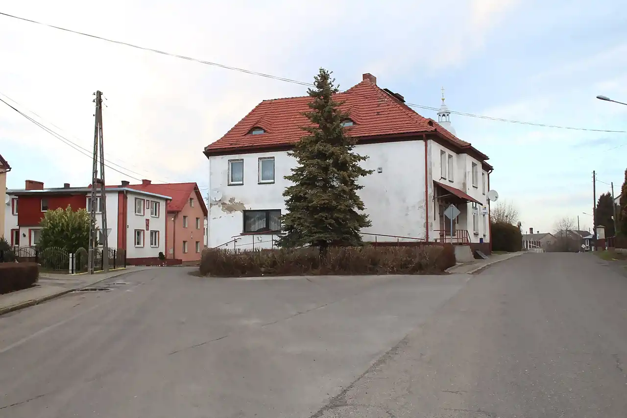 Wolnostojący, przedwojenny dom wybudowany w tradycyjnej technologii posadowiony wraz garażem na działce o powierzchni 9,60 ar (działka nr 705 i 706). Budynek jest w stanie do zamieszkania lecz wymaga częściowego remontu. Wszystkie instalacje sprawne, ogrzewanie z pieca węglowego. Na parterze pomieszczenia nadające się pod działalność (były bar), na pierwszym piętrze pomieszczenia mieszkalne, strych do zagospodarowania. Dom nadaje się zarówno do zamieszkania przez dużą lub dwupokoleniową rodzinę jak i pod działalność handlowo-usługową. Media: prąd, woda, kanalizacja. Cena do negocjacji.