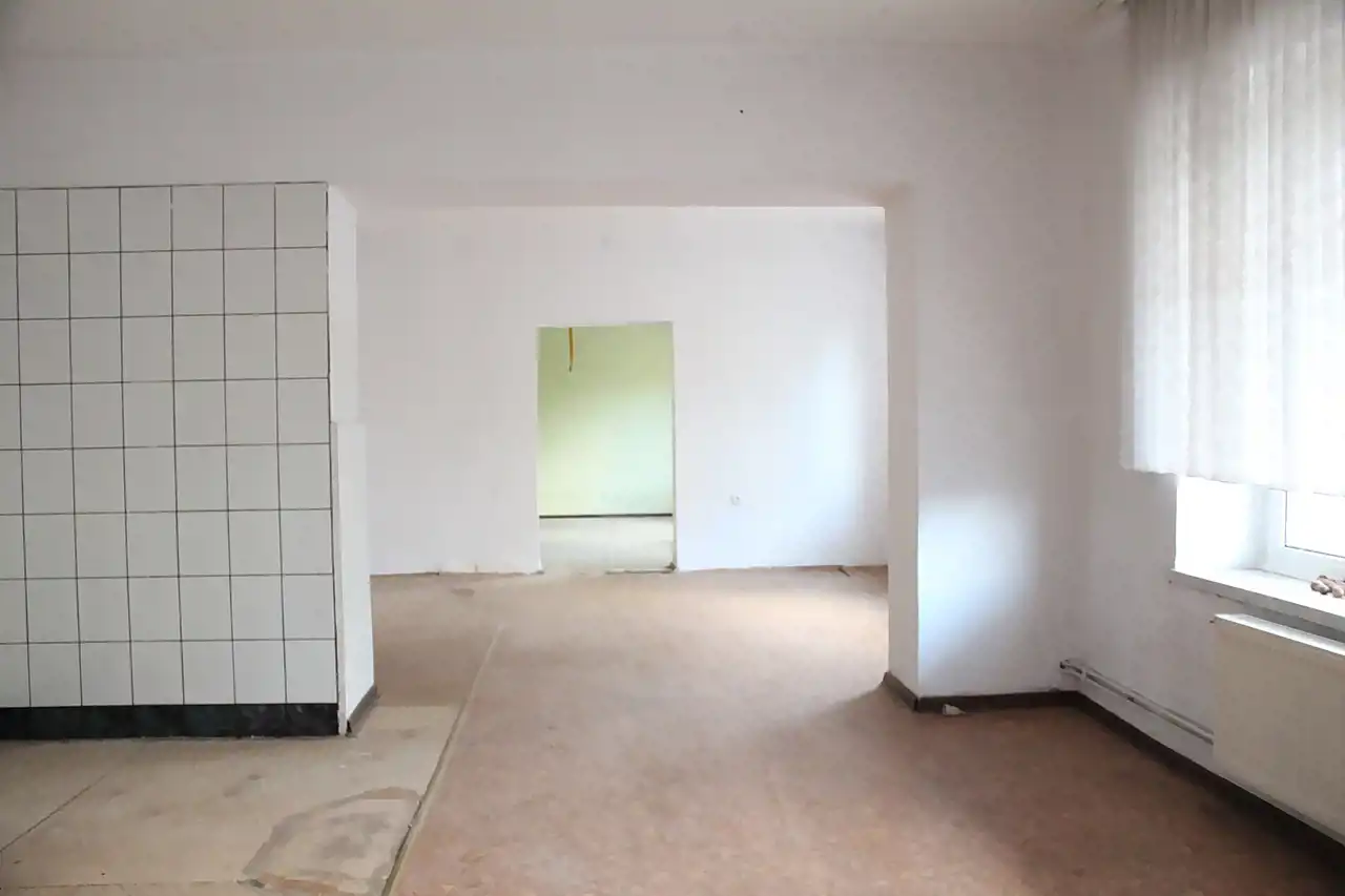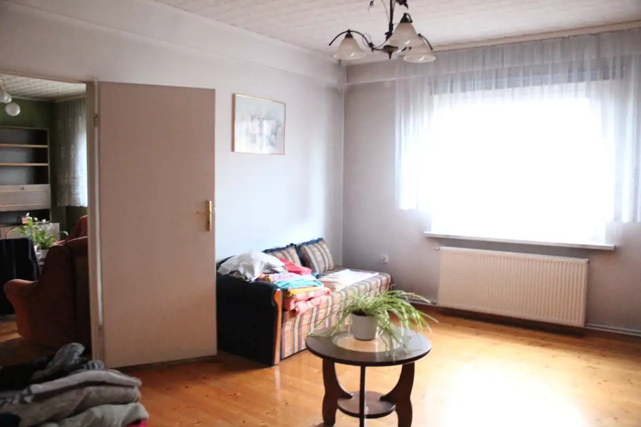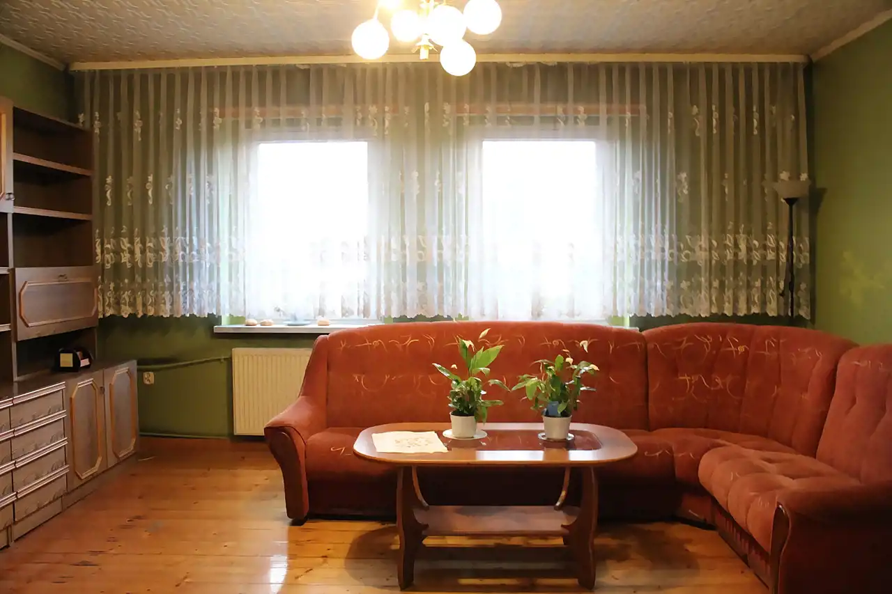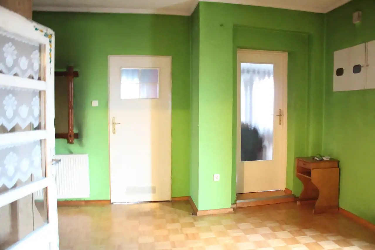 Wolnostojący, przedwojenny dom wybudowany w tradycyjnej technologii posadowiony wraz garażem na działce o powierzchni 9,60 ar (działka nr 705 i 706). Budynek jest w stanie do zamieszkania lecz wymaga częściowego remontu. Wszystkie instalacje sprawne, ogrzewanie z pieca węglowego. Na parterze pomieszczenia nadające się pod działalność (były bar), na pierwszym piętrze pomieszczenia mieszkalne, strych do zagospodarowania. Dom nadaje się zarówno do zamieszkania przez dużą lub dwupokoleniową rodzinę jak i pod działalność handlowo-usługową. Media: prąd, woda, kanalizacja. Cena do negocjacji.