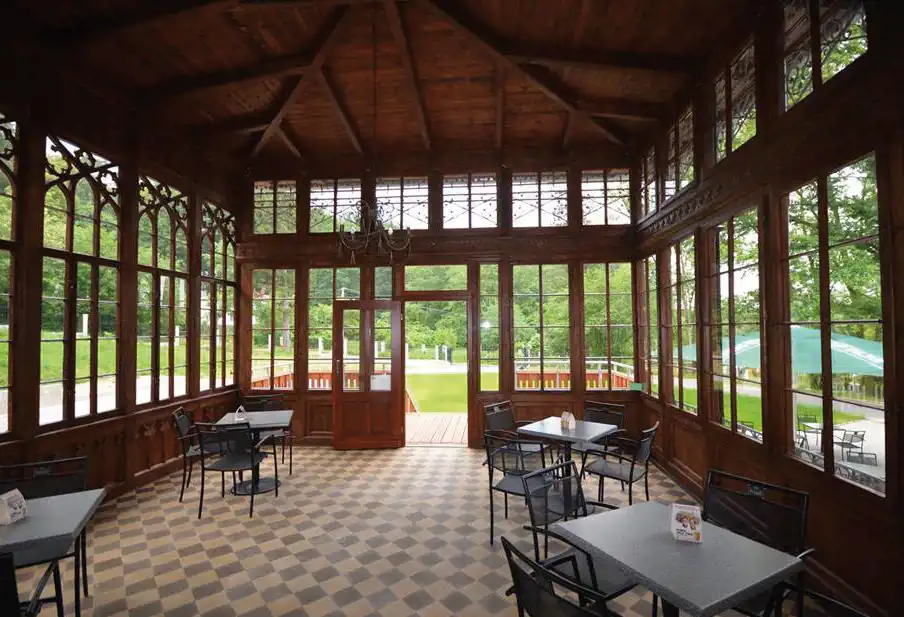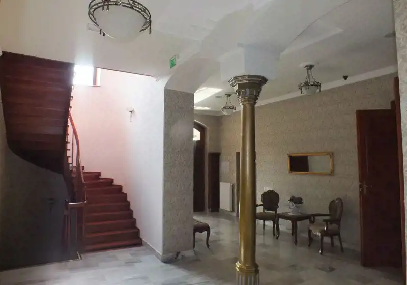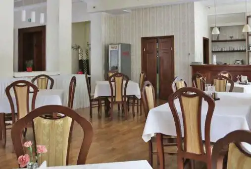 W części podpiwniczonej o powierzchni 326 m2 kuchnia, magazyn, zaplecze socjalne, pomieszczenia gospodarcze i rekreacyjne (sauna, jacuzzi, gabinet masażu, siłownia) . Na parterze 394 m2: restauracja z czterema salami,bar, dwie toalety, w tym jedna dla niepełnosprawnych, pięć pokoi z łazienkami.