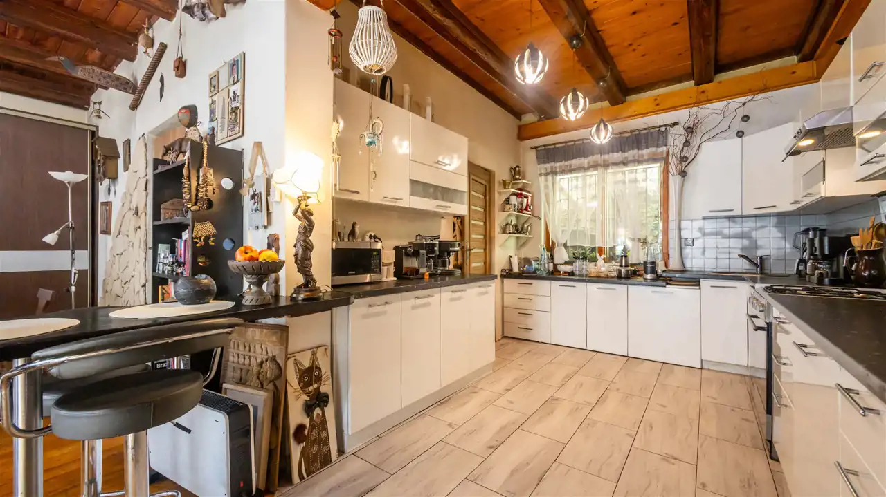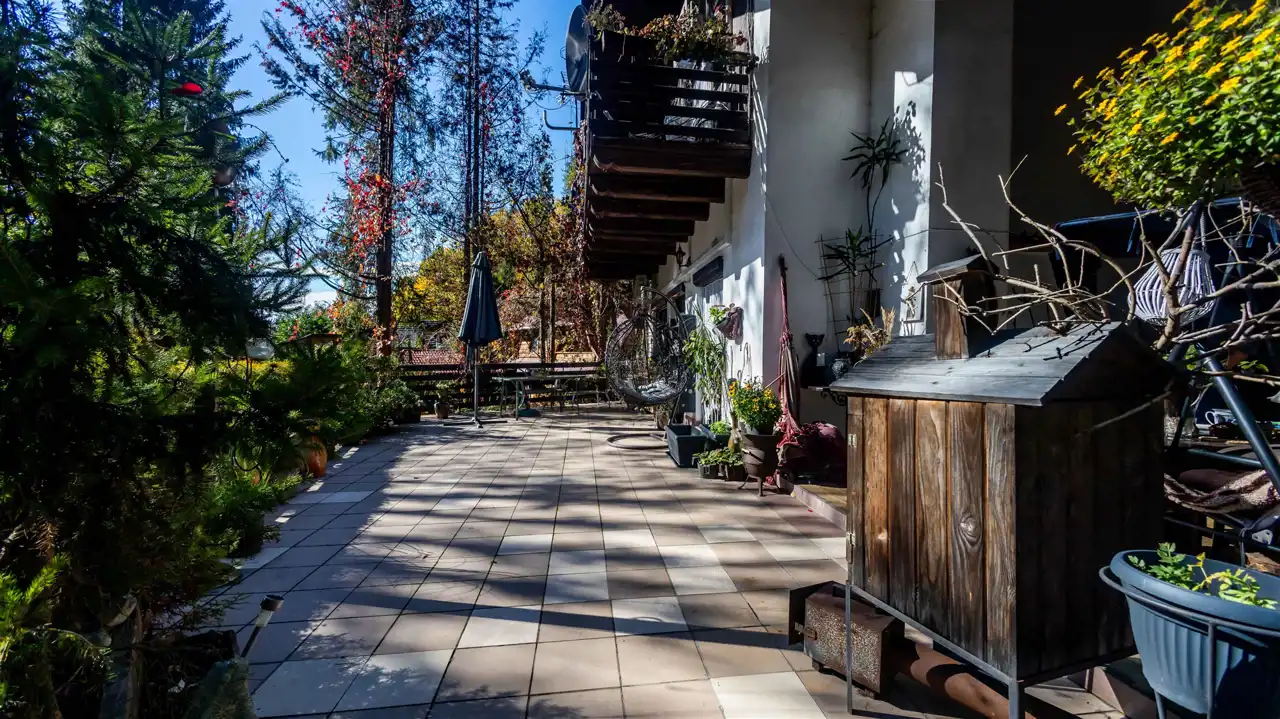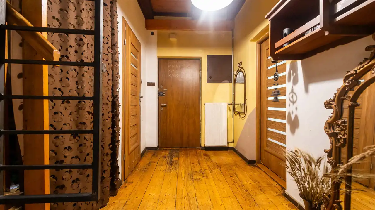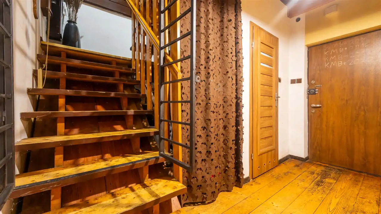 - Niezależny apartament z osobnym wejściem o powierzchni około 12 m2, aneksem kuchennym, łazienką oraz zejściem do sauny (ze względu na turystyczną okolicę można wykorzystać tę przestrzeń do wynajmu i uzyskiwać dodatkowy dochód)