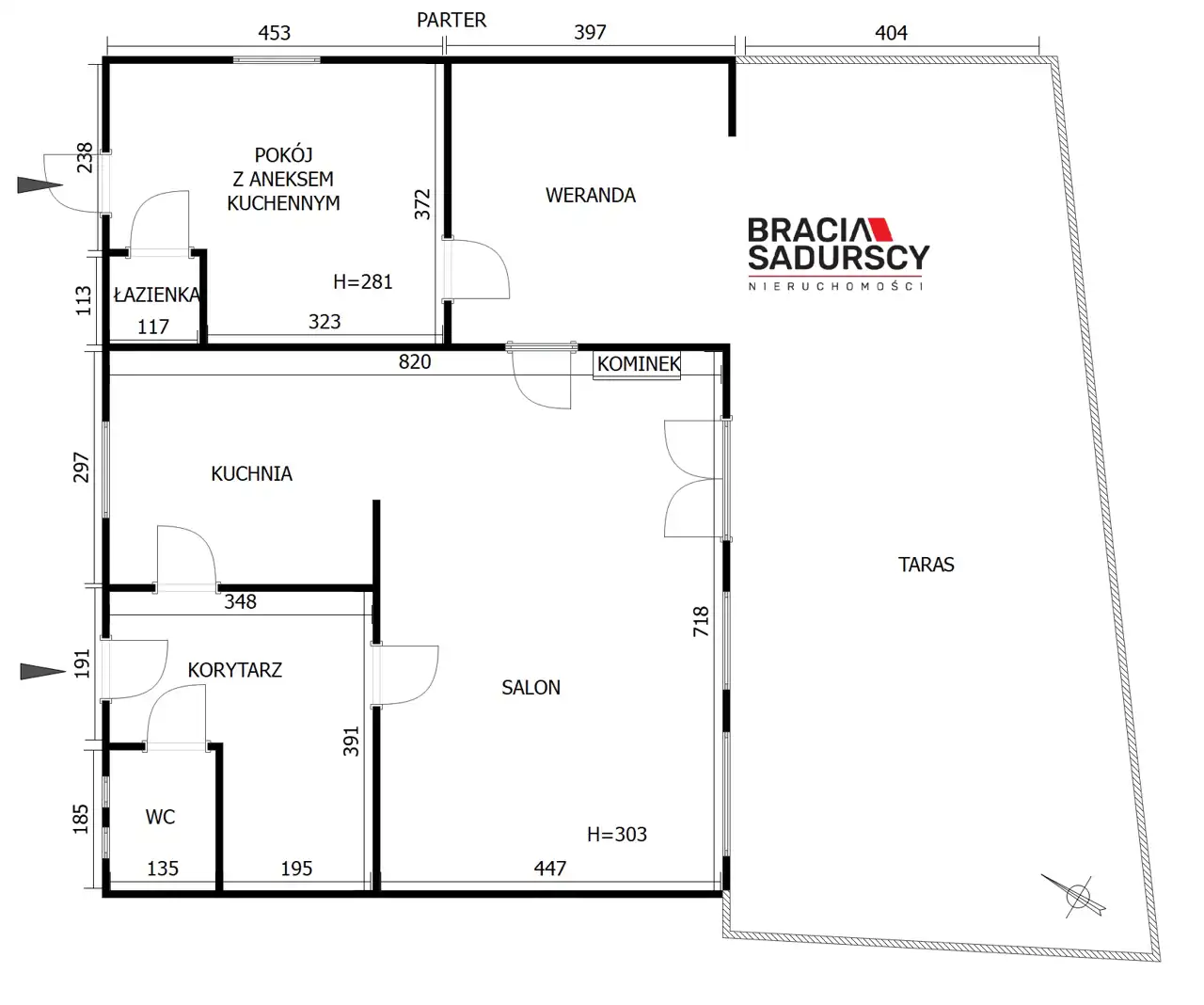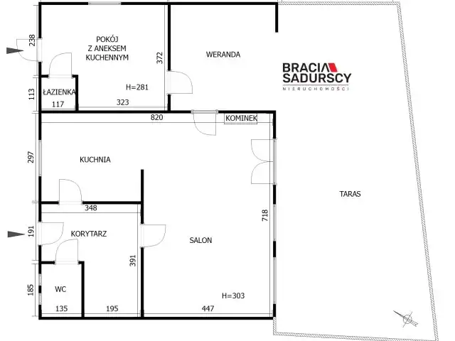 - weranda z tarasem (łącznie 55 m2) - weranda zadaszona z dodatkowym kominkiem i wyjściem na przestronny taras. Istnieje możliwość przekształcenia werandy na dodatkowe pomieszczenie o powierzchni około 15 m2 (np. gabinet, salon kąpielowy z jacuzzi, dodatkową saunę z widokiem na las)