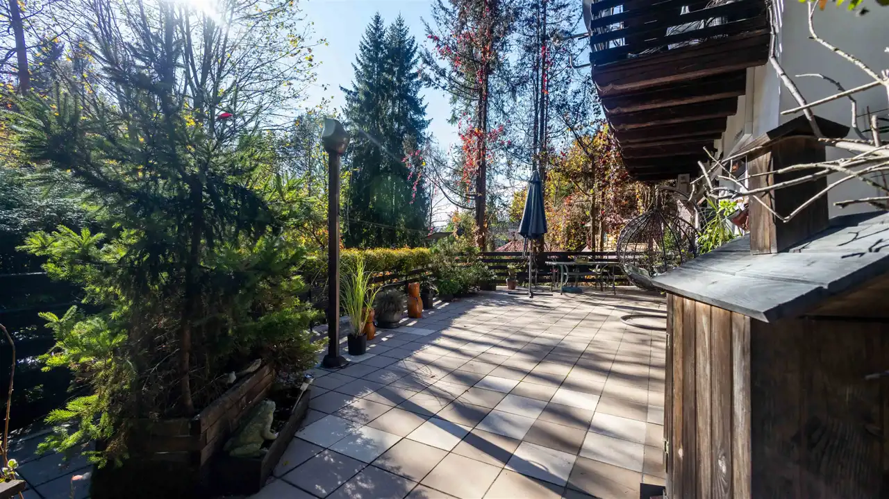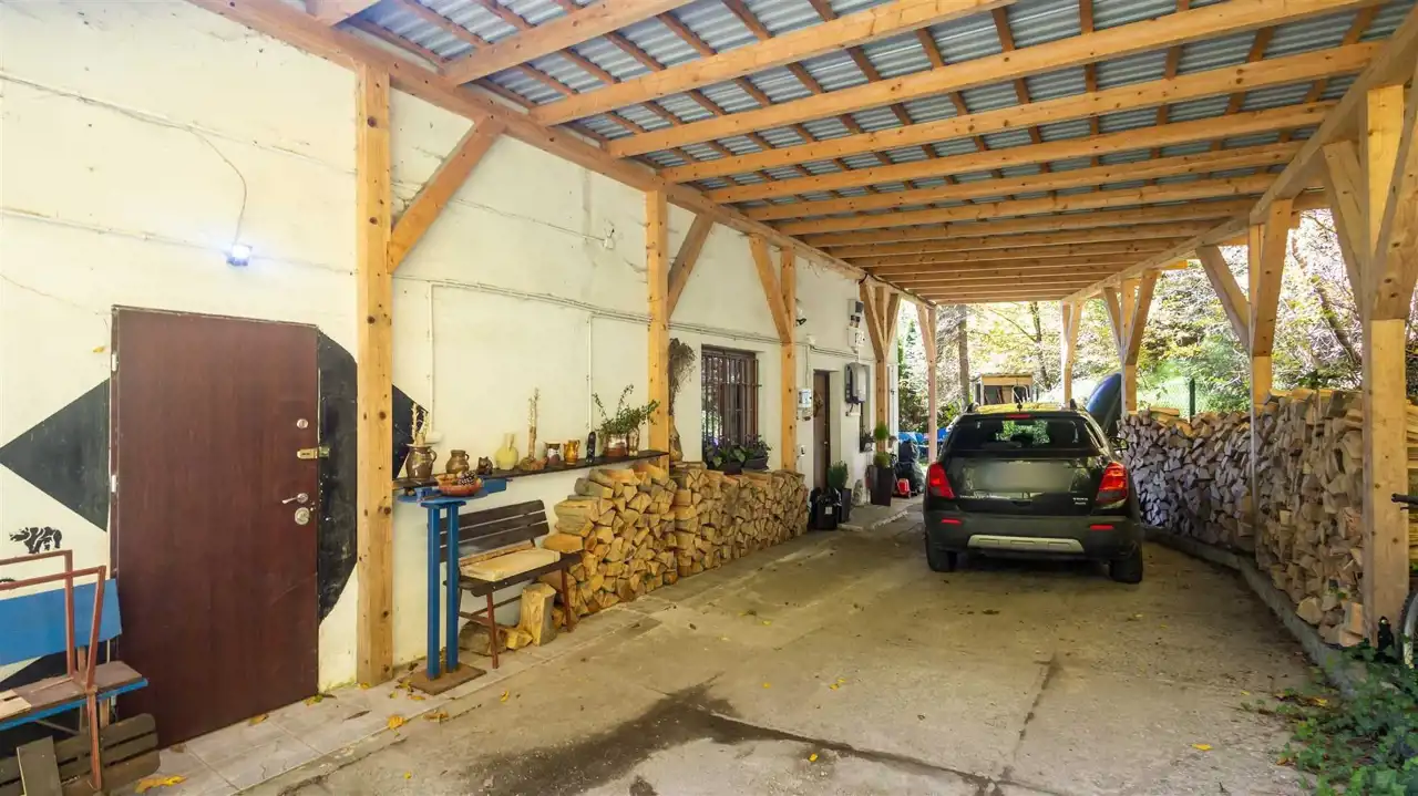- Zadaszona wiata na dwa samochody oraz dodatkowy garaż o powierzchni 30 m² z automatyczną bramą.