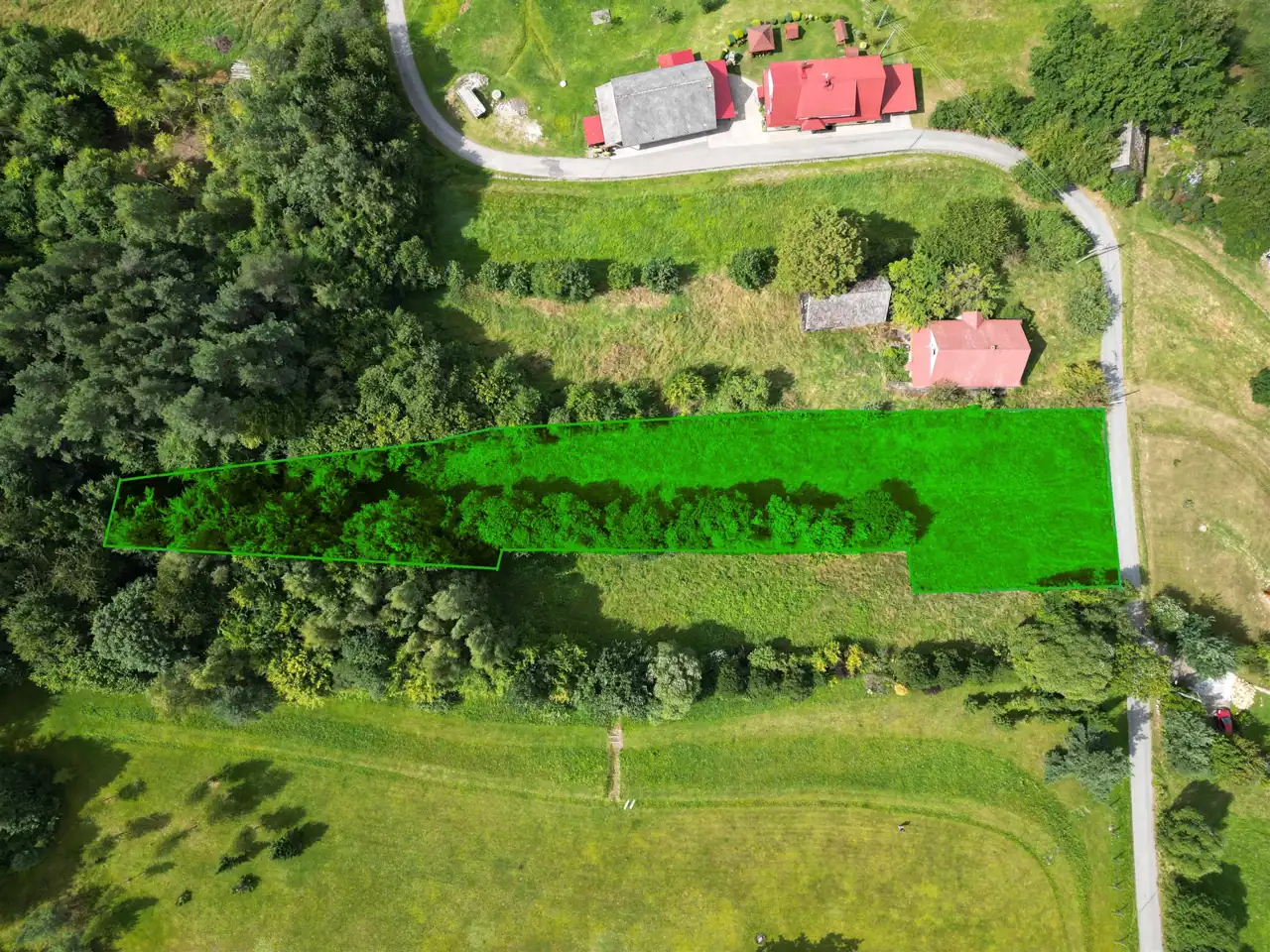 - Działka lekko nachylona, nieregularny