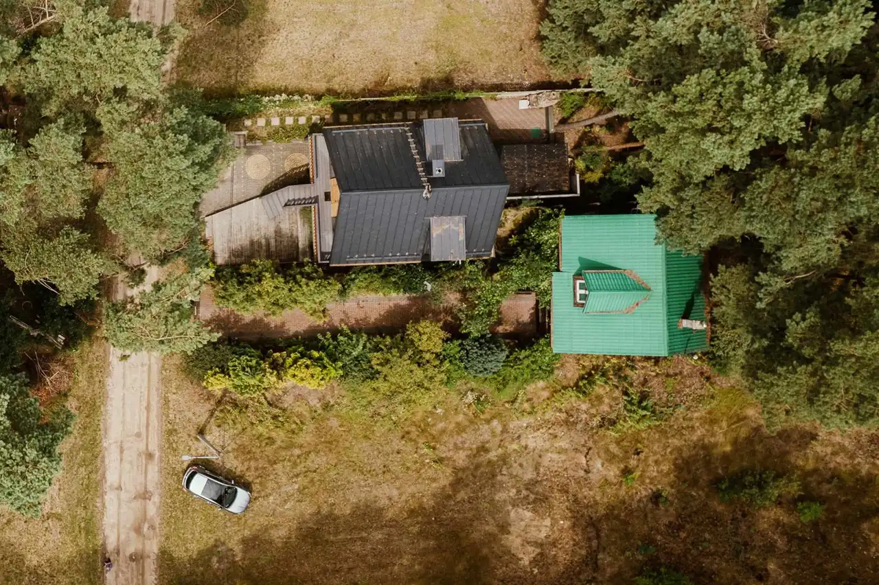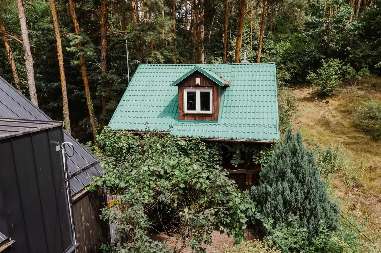 - Działka częściowo zagospodarowana, częściowo zalesiona, prostokąt