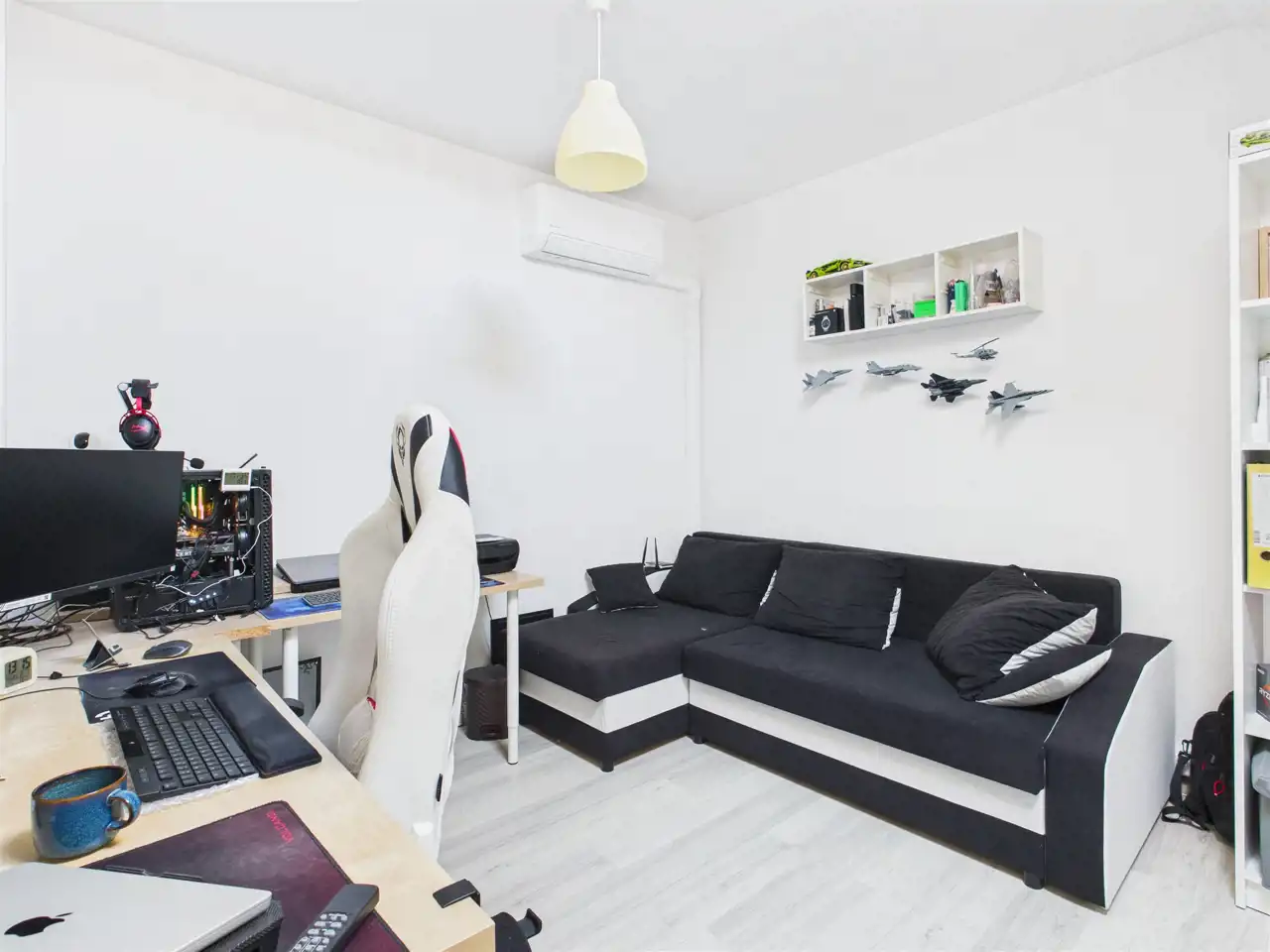 W pełni zaadaptowana przestrzeń, która może pełnić funkcję dodatkowej sypialni, gabinetu, pokoju rekreacyjnego, pracowni lub strefy hobby.