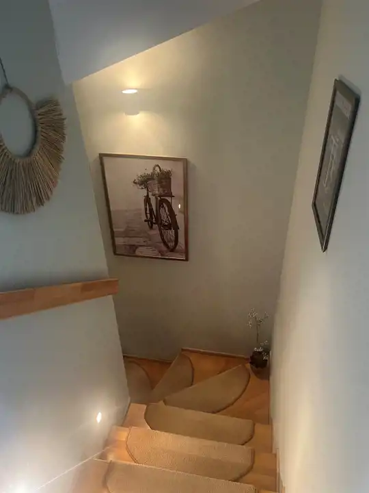 Schody prowadzą nas na piętro ,gdzie na pietrze mamy 2 sypialnie ,jedna z nich ma pojemną szafę wnękowa ,poza tym jest łazienka z wc.