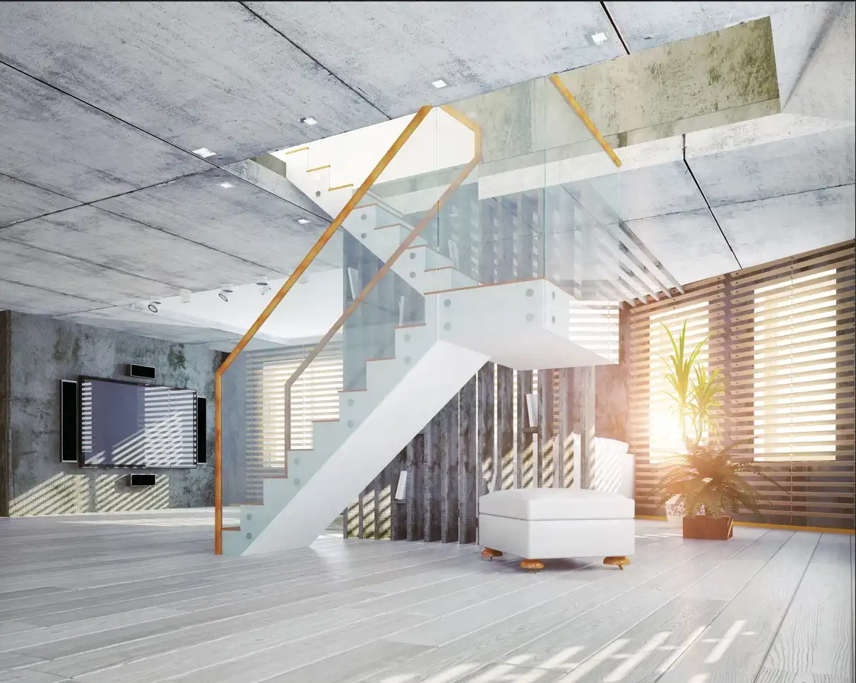 Nowoczesna architektura, duże okna, jasne przestronne wnętrza.