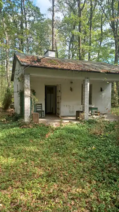 - na działce znajduje się domek z lat 50-tych do rozbiórki, bądź może służyć jako pomieszczenie do przechowywania sprzętów na czas budowy,